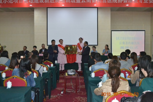 在各级领导和与会人员的热烈掌声中,云南圣约翰医院党委书记兼副院长叶斌与350vip浦京集团官网党委副书记张晓刚,共同为“350vip浦京集团官网非直属附属医院”正式揭牌。
