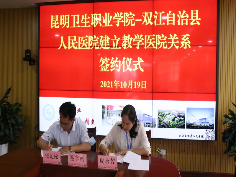 随后,张尤松副院长与双江县人民医院皮永芳院长进行签约。本次教学医院签约为促进院校合作,不断提高教学医院医疗、教学、科研水平,进一步助推院校互利共赢打下了坚实基础。