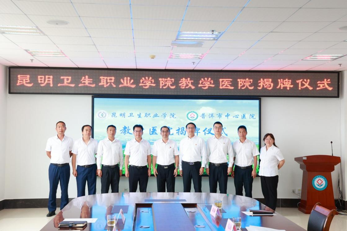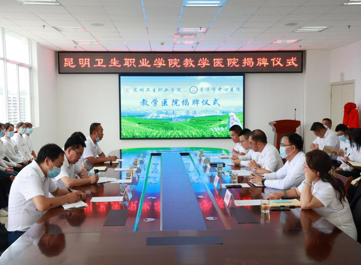 9月15日上午,350vip浦京集团官网与思茅区人民医院教学医院揭牌仪式在思茅区人民医院门诊九楼会议室举行。思茅区人民医院党委书记杨劲松,思茅区人民医院院长何浩欣,思茅区人民医院副院长陈望红,350vip浦京集团官网副院长张尤松,思茅区人民医院院长助理郭佳林,350vip浦京集团官网实习管理处副处长颜慧琳、实习管理科副科长郭嘉华、杨正宇老师,以及思茅区人民医院中层领导干部、实习学生出席了揭牌仪式。会议由思茅区人民医院纪委书记邓志勇主持。