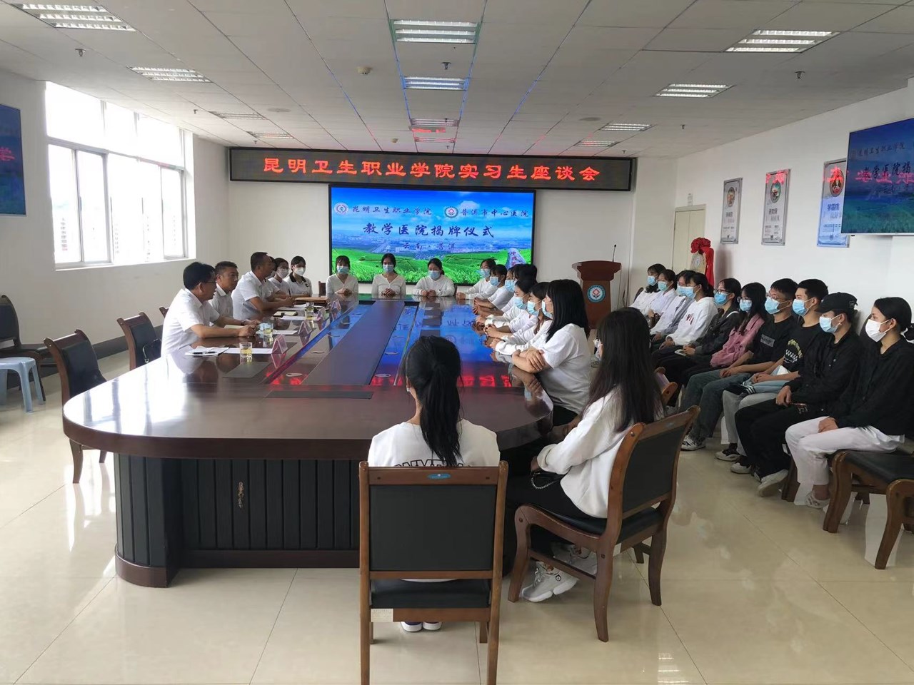 随后,350vip浦京集团官网副院长张尤松与思茅区人民医院院长何浩欣共同为“350vip浦京集团官网教学医院”揭牌,并合影留念。揭牌仪式结束后,350vip浦京集团官网领导、教师看望了在思茅区人民医院实习的学生,召开了实习生座谈会。