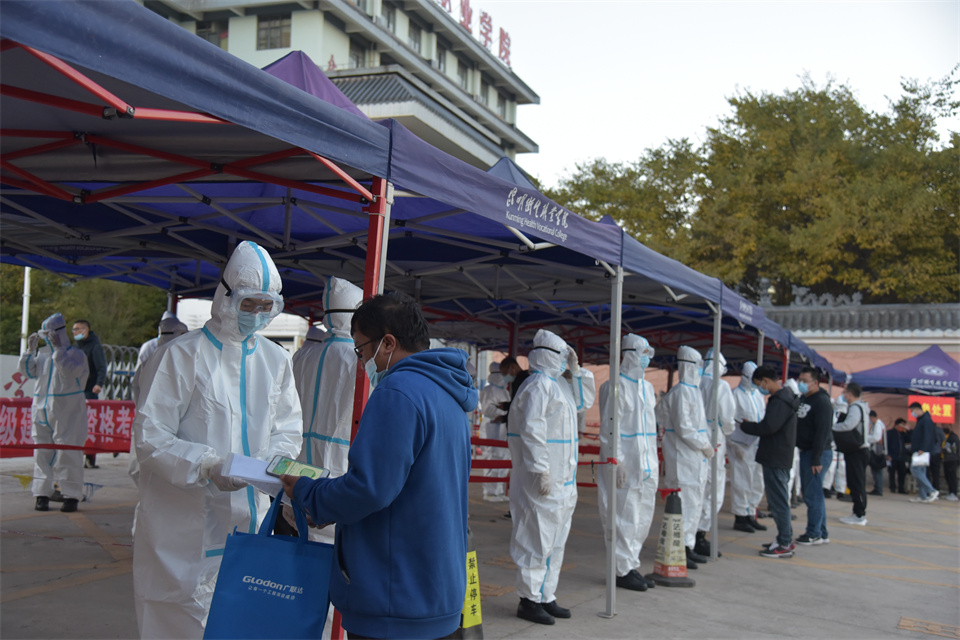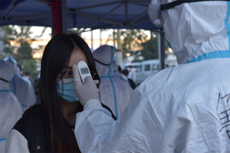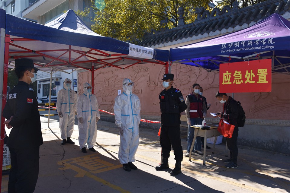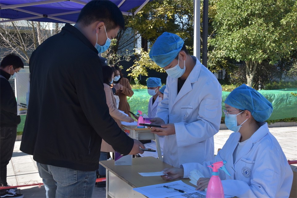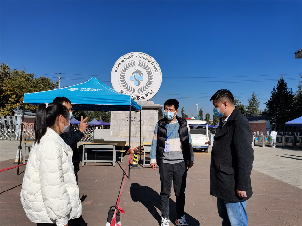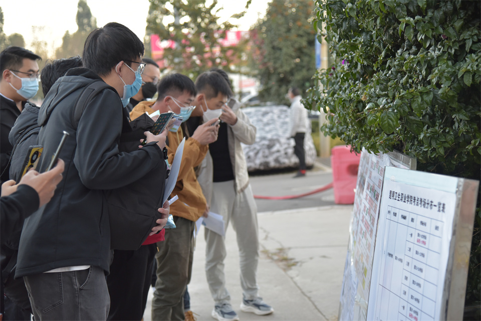 疫情防控期间,浦京严格按照疫情防控要求,考生进入校门起便严把防疫关卡,对入校考生进行身份核查,查验考生首场考试24 小时核酸证明、通信大数据行程卡、云南健康码绿码和体温测量正常后,方可进入校园;考试过程中,考务人员及全体考生全程佩戴口罩,确保考务和防疫工作零失误。此外,学院还于11月19日上午、下午和11月20日上午三个时段为考生安排了三次核酸检测。核酸检测现场,考生信息登记、健康码扫码有条不紊,医务人员认真核对考生信息,严格按照采样流程进行操作。