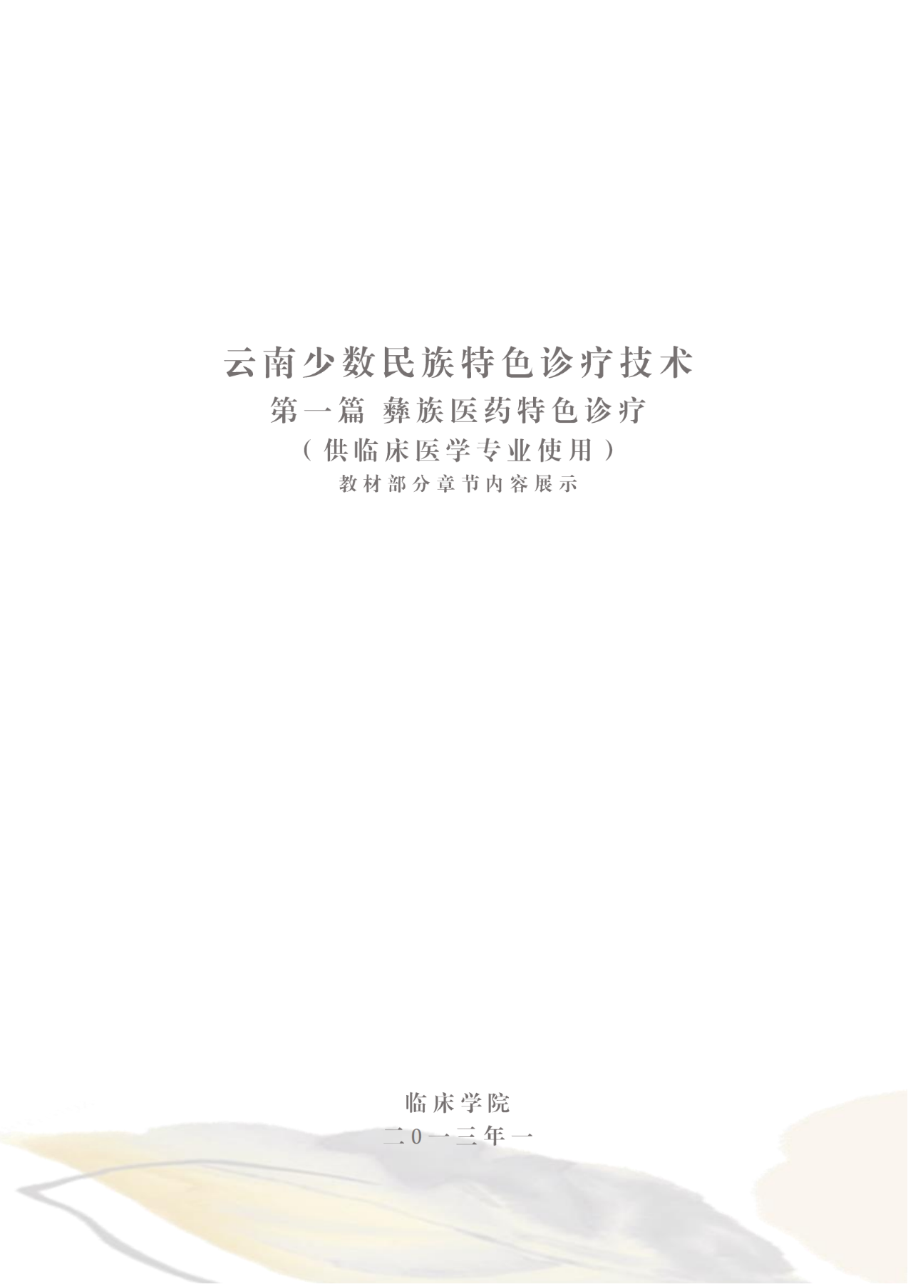 具有区域特色的校本教材—云南少数民族特色诊疗技术(第一篇 彝族医药诊疗技术)