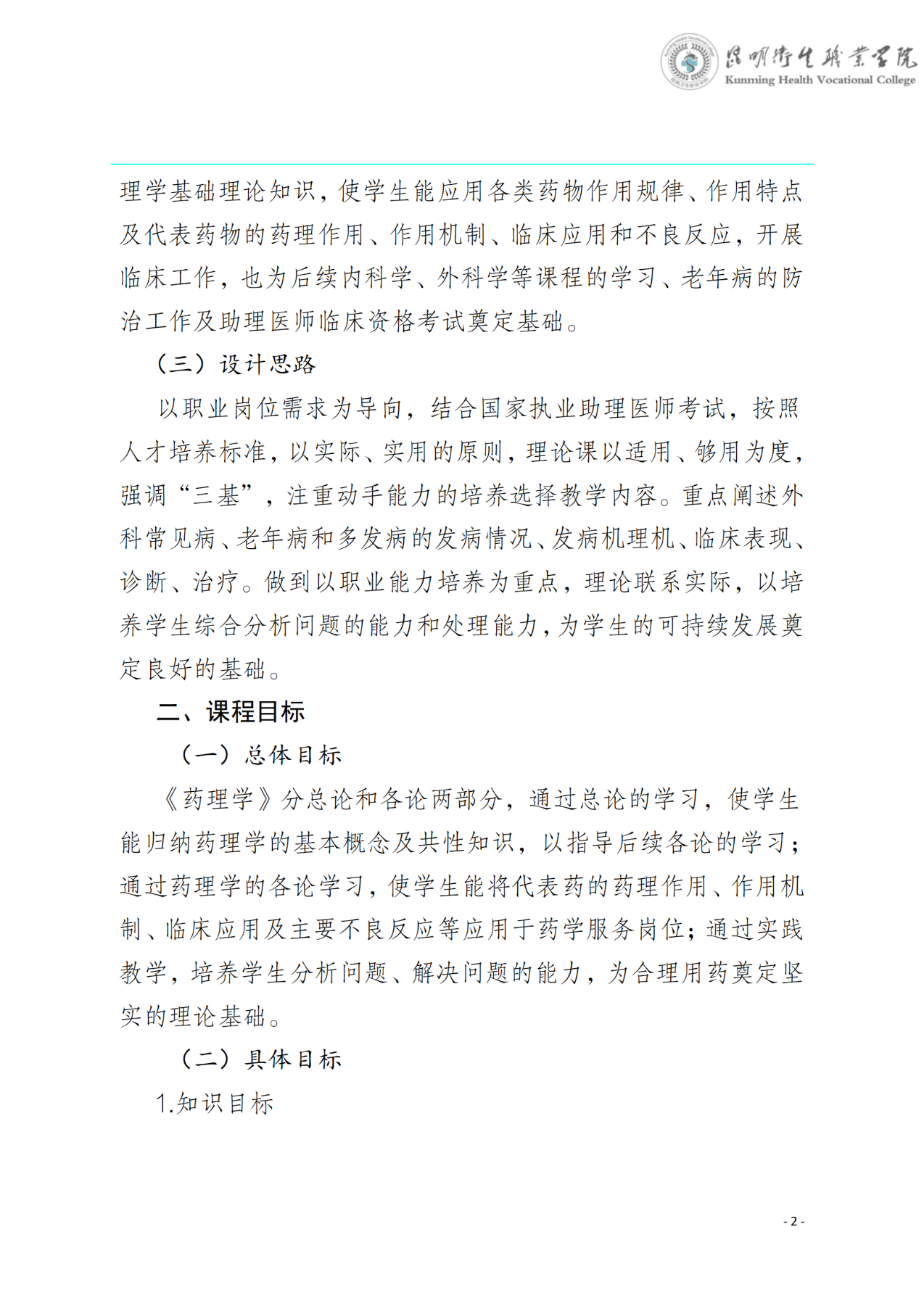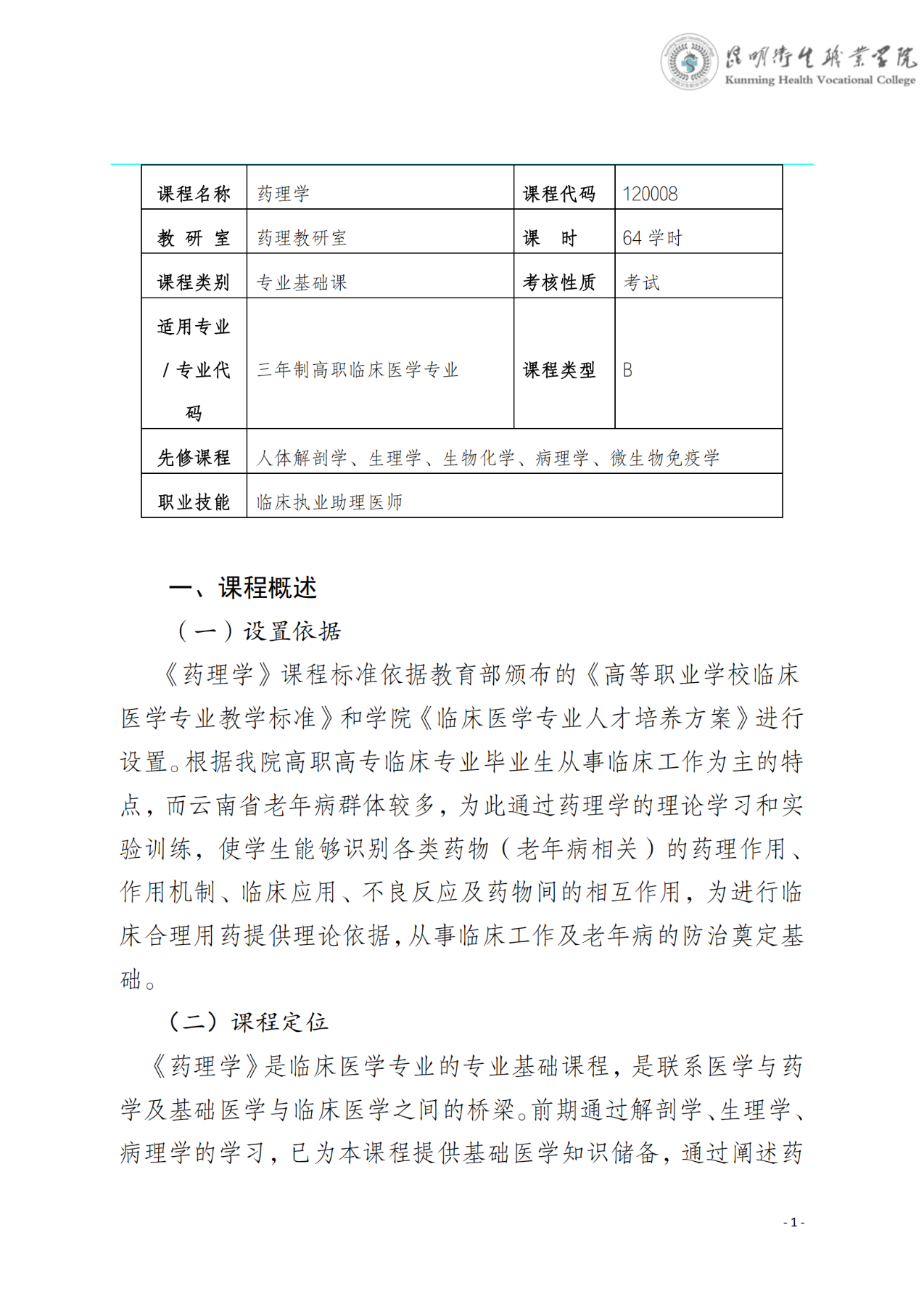 《药理学》课程标准