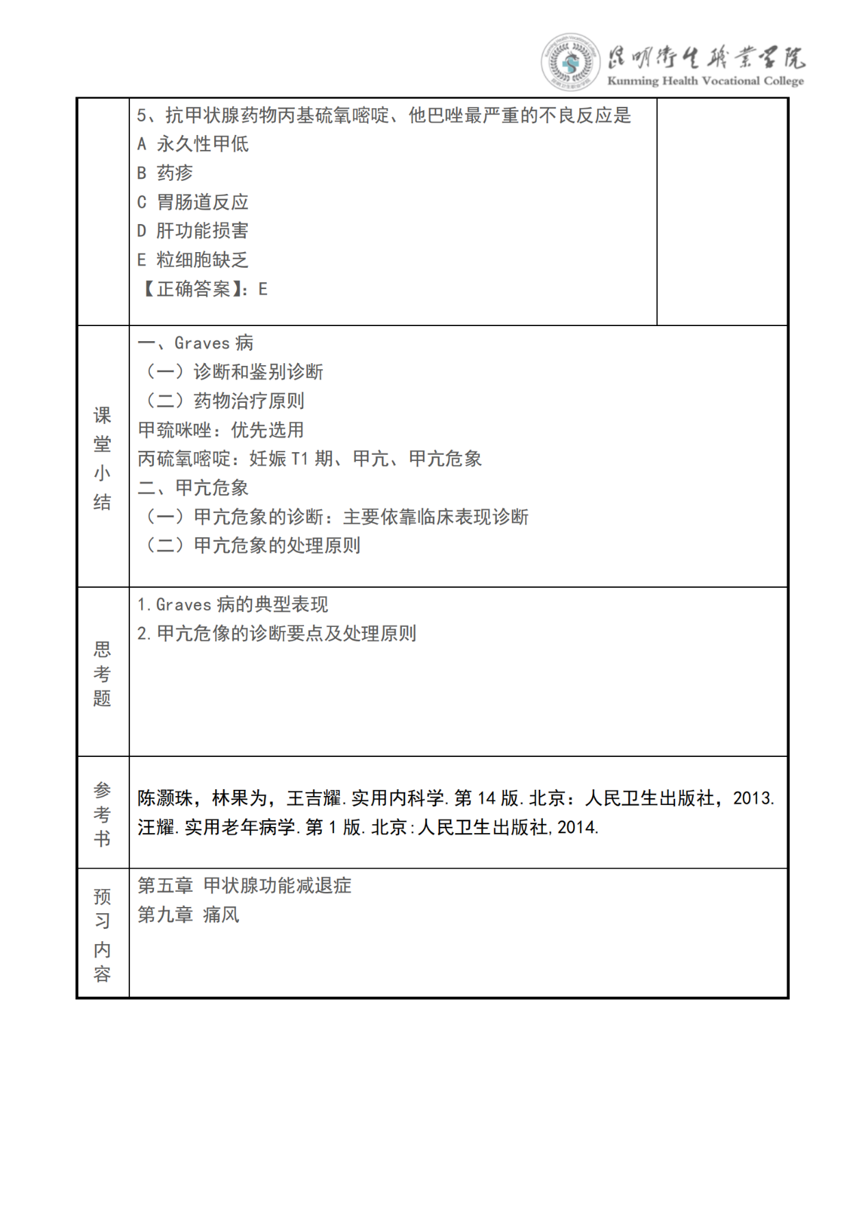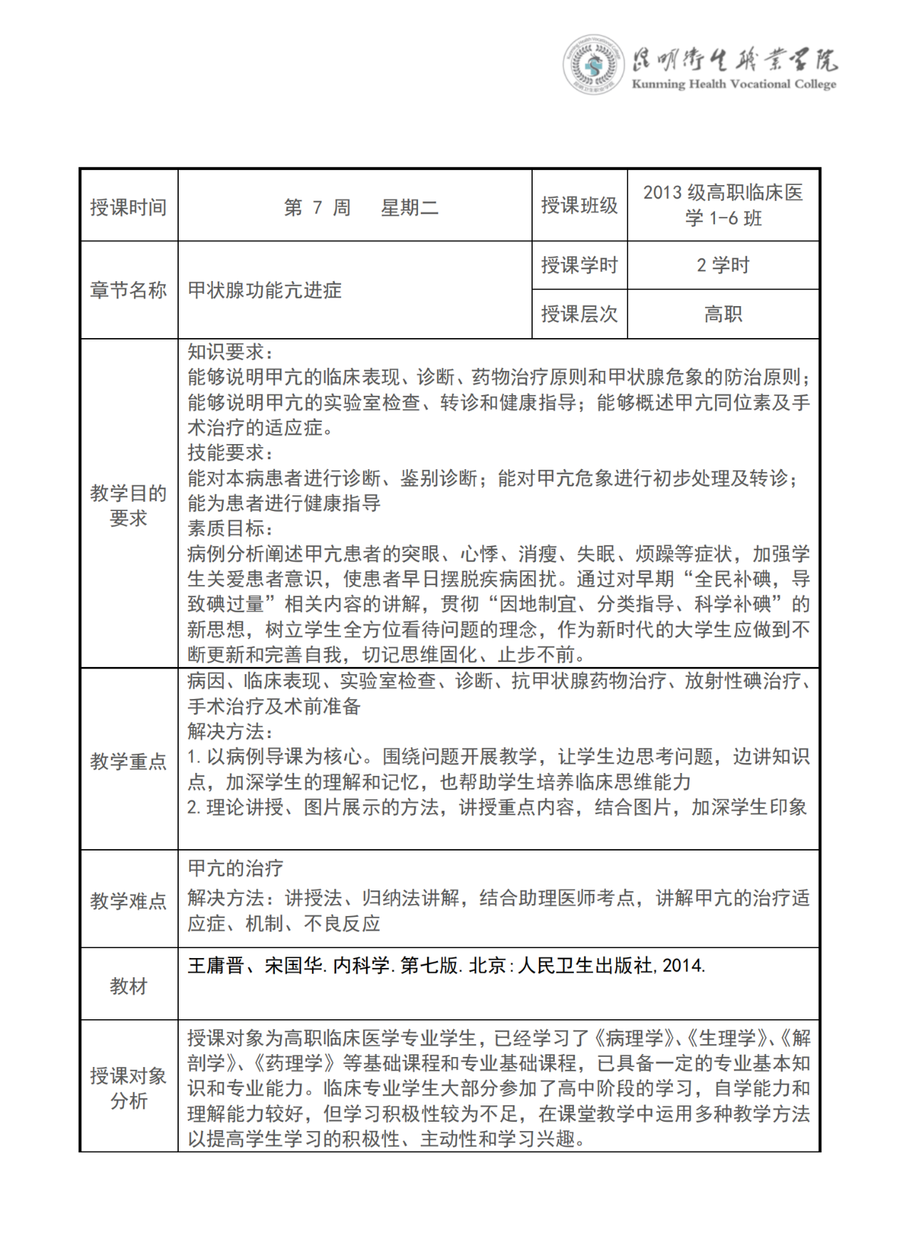《甲状腺功能亢进》教案(内科学)