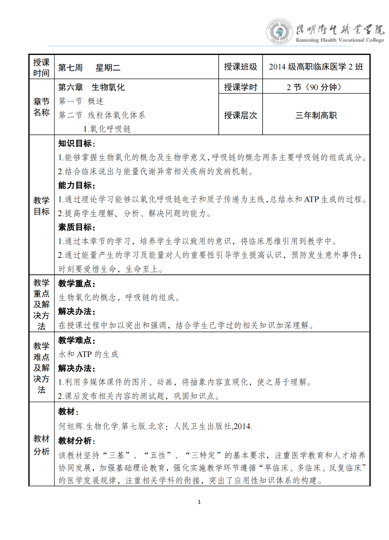 《生物氧化》教案(生物化学)