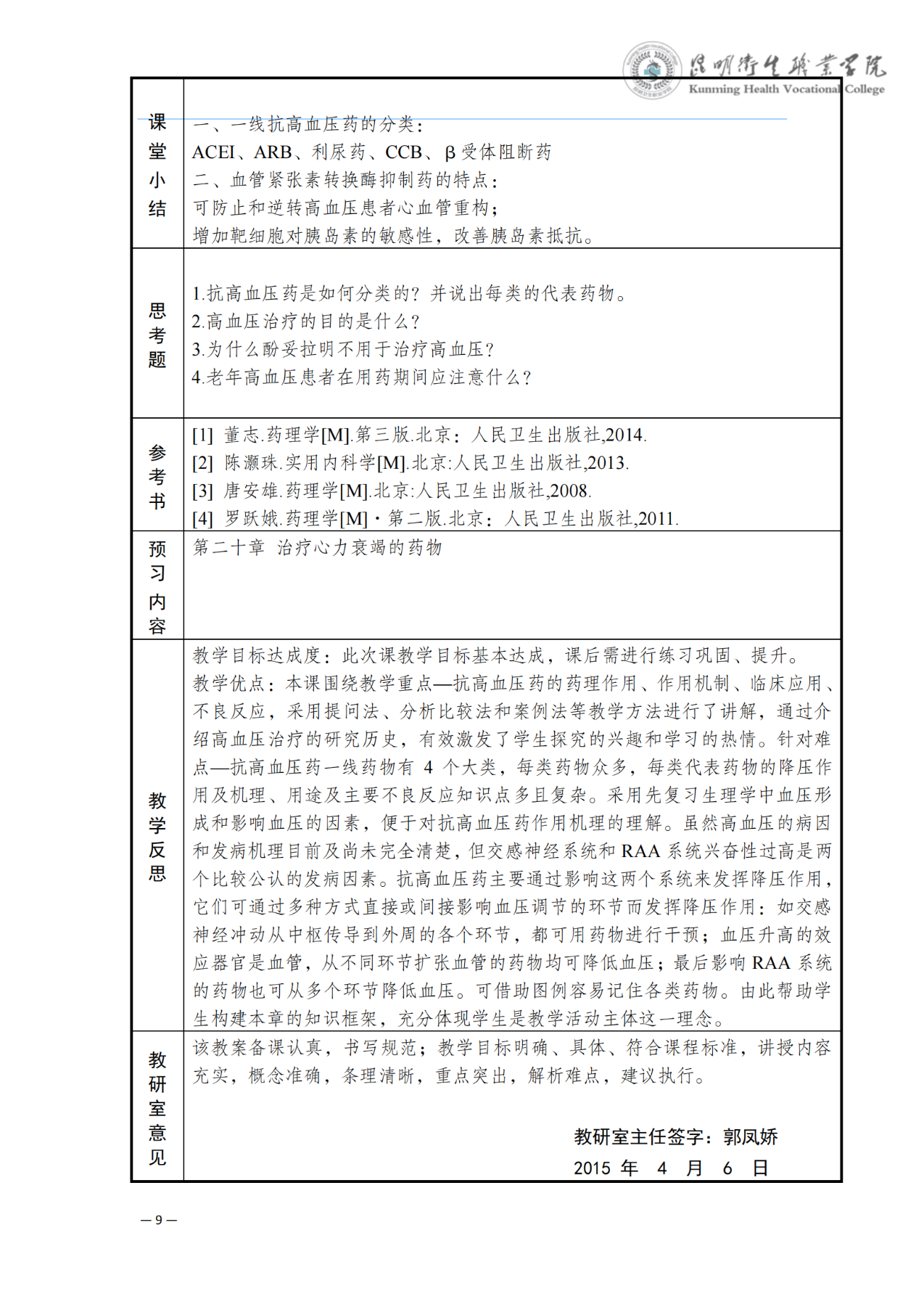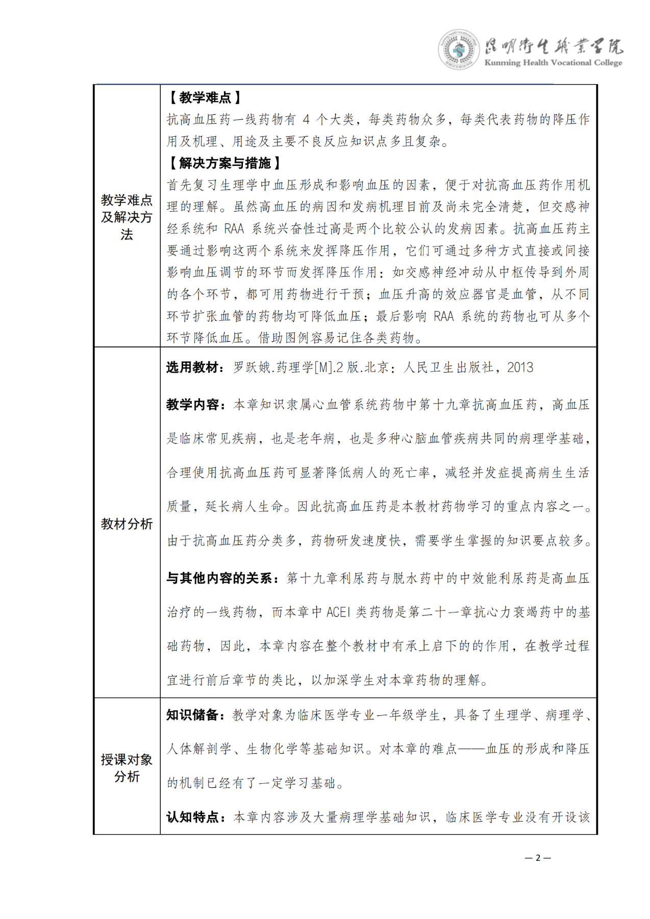 《抗高血压药》教案(药理学)