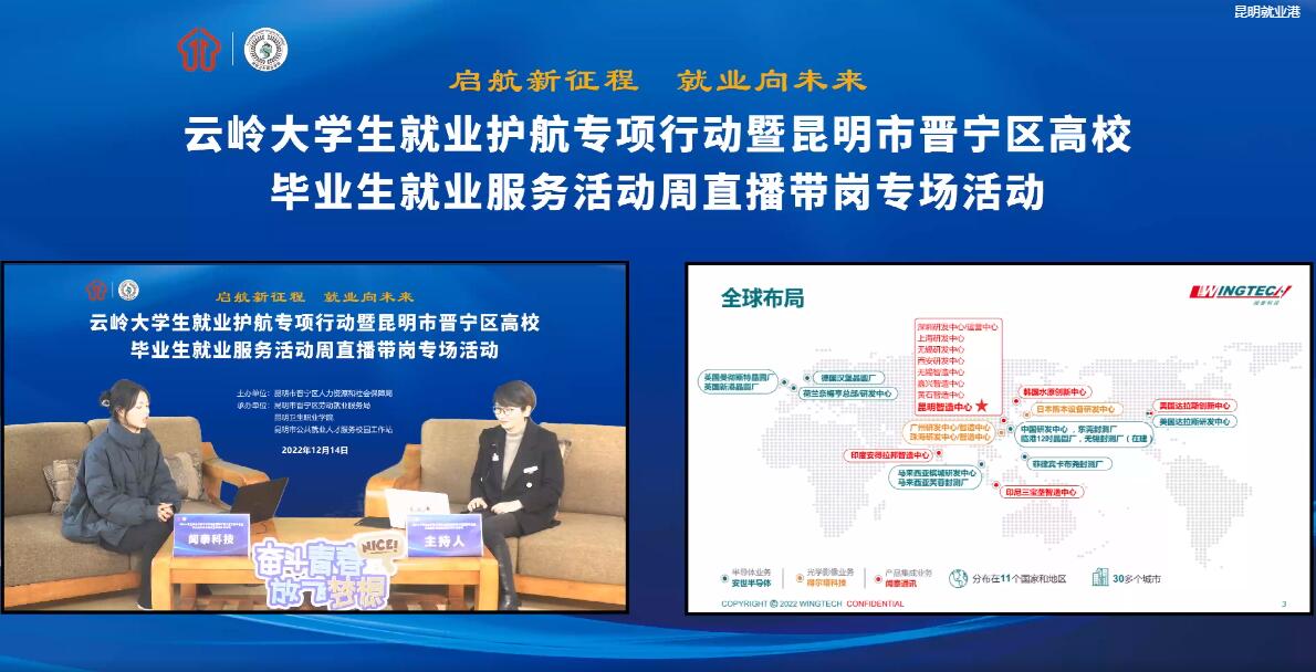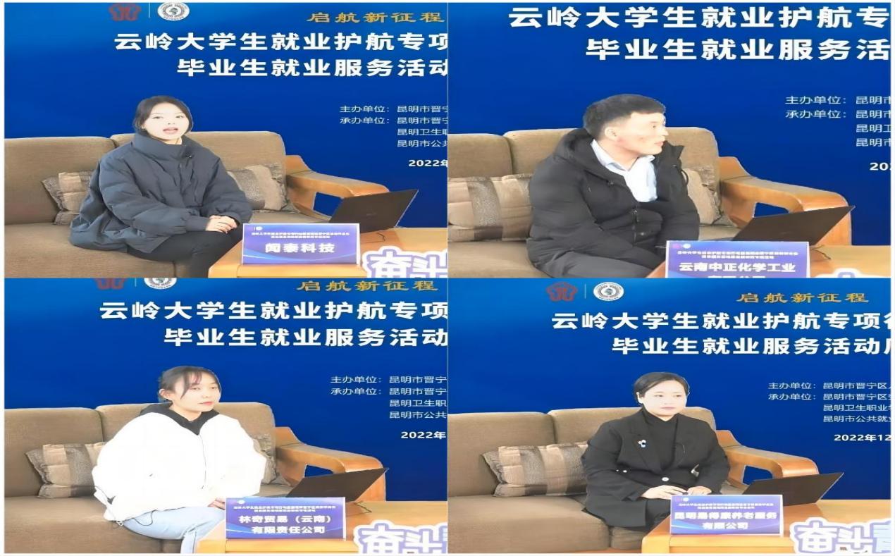 根据云南省人力资源和社会保障厅办公室《关于开展2022年人力资源市场高校毕业生就业服务周活动的通知》安排,确保晋宁区高校毕业生稳定充分就业,2022年12月14日,由昆明市晋宁区人力资源和社会保障局主办,350vip浦京集团官网、昆明市晋宁区劳动就业服务局、昆明市公共就业人才服务校园工作站承办的云岭大学生就业护航专项行动暨昆明市晋宁区高校毕业生就业服务活动周直播带岗专场活动在学院众创空间举行。
