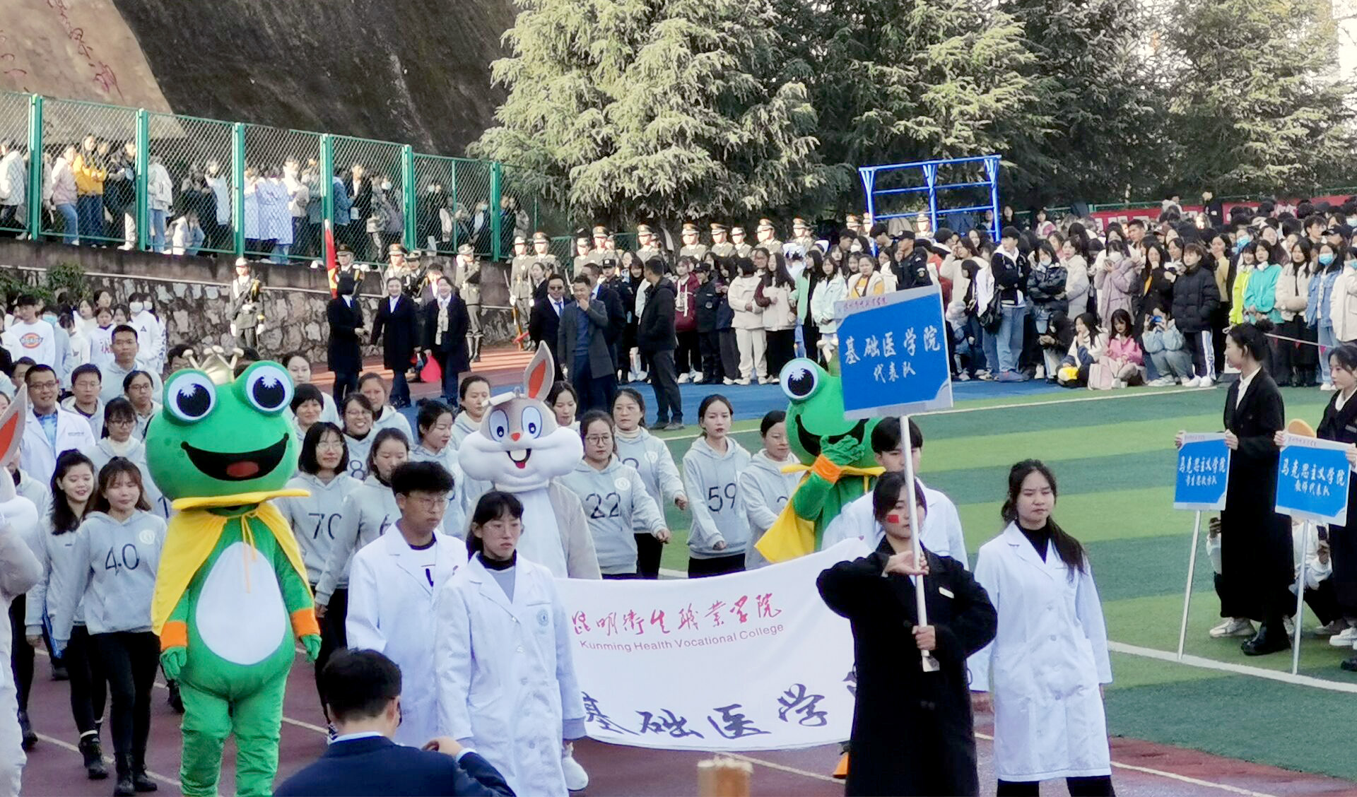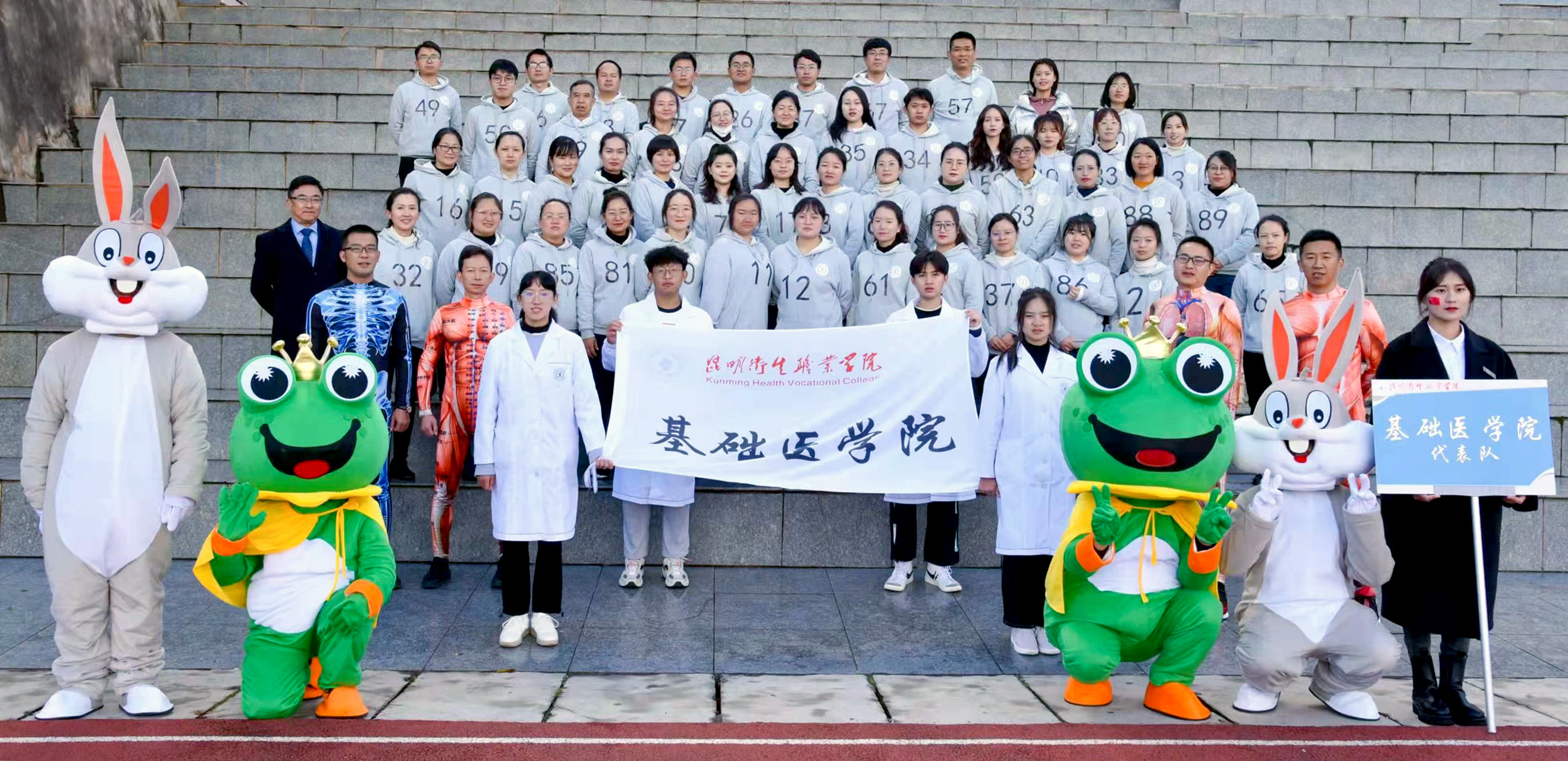 在学院第四届体育文化节暨第十一届冬季运动会开幕表演中,基础医学院全体教师精诚团结、开拓创新,打破以往刻板印象,身着解剖结构服和实验动物装表演“舞蹈串烧”。在表演的同时科普了知识,获得了广大观众的喜爱,视频在各大自媒体平台上转载,得到了广大网友的好评。