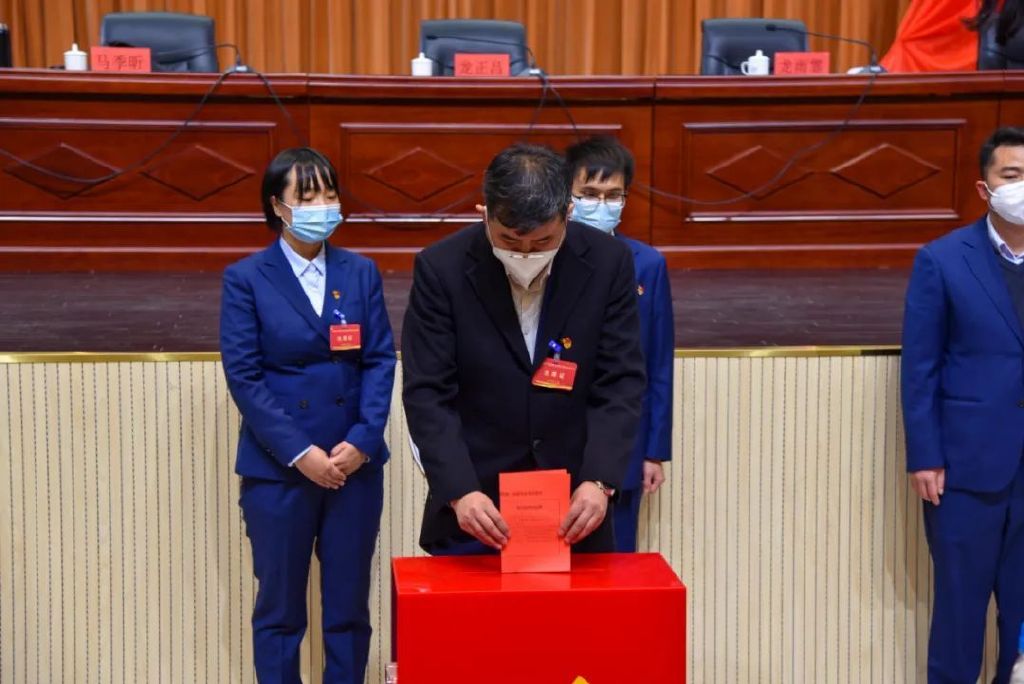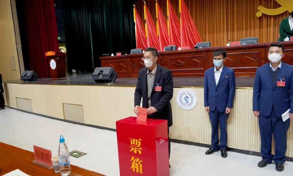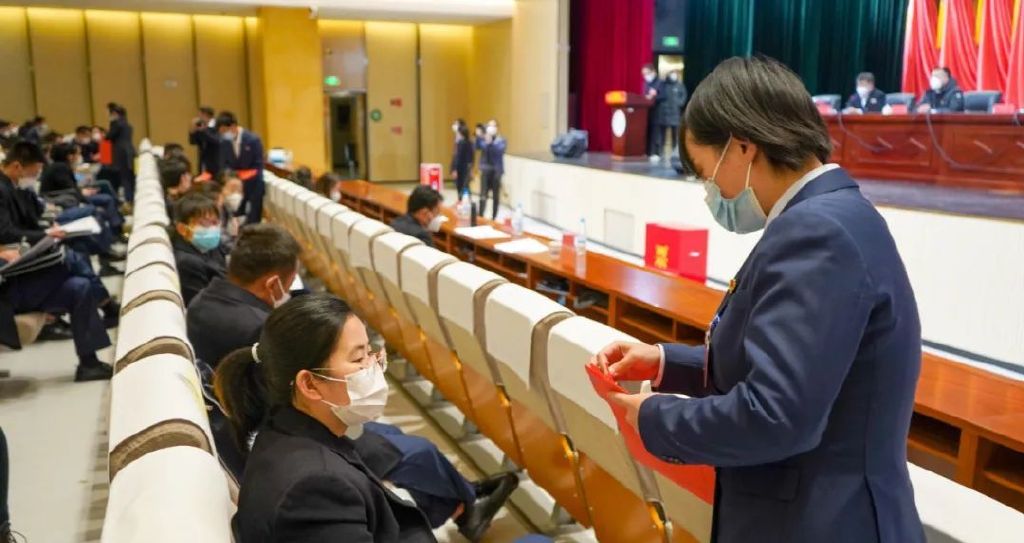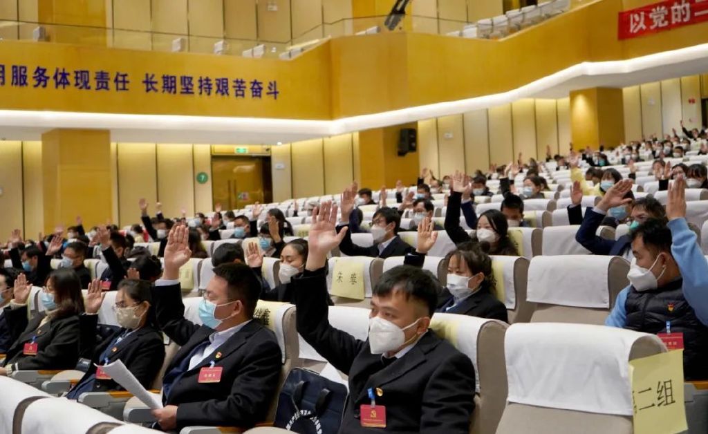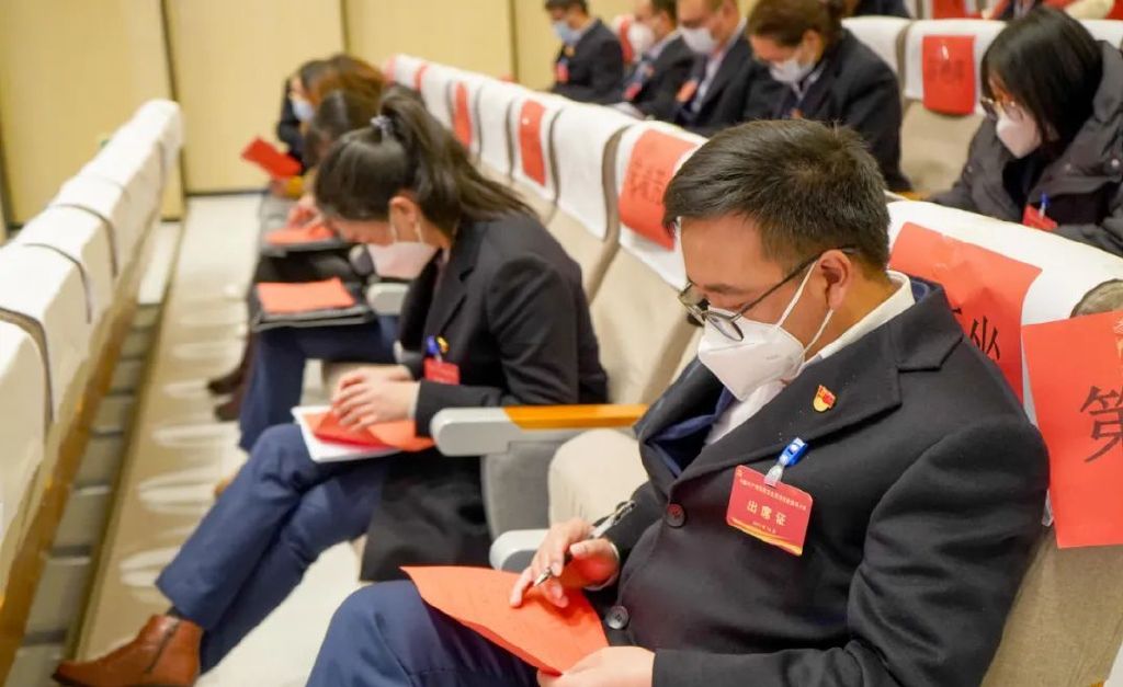 朴素庄严的大会主席台上,正上方悬挂着“中国共产党350vip浦京集团官网党员大会”会标,帷幕中央高悬的金黄色党徽熠熠生辉,十面鲜艳的红旗分列两侧。会场庄重肃穆、气氛热烈。