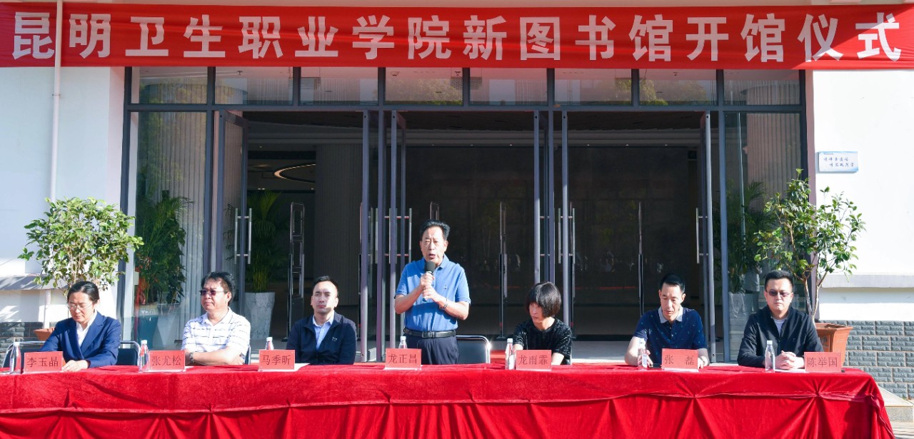 龙正昌董事长对新图书馆的筹备和建设工作给予了充分肯定,他代表集团和学院为新图书馆建设作出贡献的师生员工以及设计、施工、监理单位表示衷心的感谢。他指出,图书馆的建设不仅是衡量医学院办学水平的重要标志,也镌刻着学校发展壮大的艰辛与足迹。办学30年来,面对基础弱、起步晚的不利局面,学院抢抓职业教育发展机遇,艰苦奋斗、自强自立,走出了一条具有昆卫特色的发展道路。新图书馆的建设,为浦京高质量发展和办好人民满意的医学院校注入更强的发展动力,希望全体师生员工养成良好的阅读习惯,爱读书、好读书、善读书,在知识的海洋畅游,汲取前行的力量。