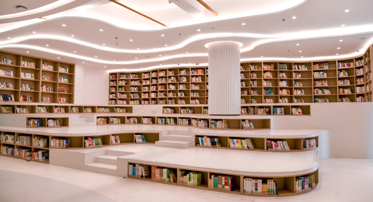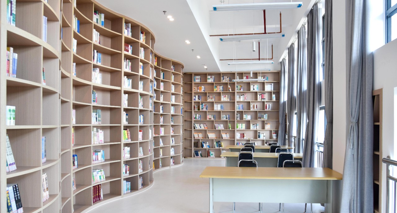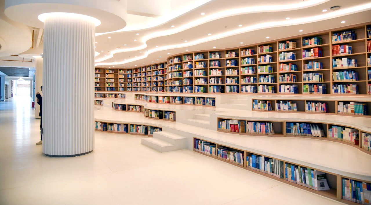 新图书馆外形建筑风格恢弘大气,占地面积3832 平方米,总建筑面积约13048.88平方米,藏书量为71万余册。馆内不仅设置了电子阅览室、密集书库等特色阅览室。还配置了人脸识别自助借还机、升降还书车等智能设备,是集藏、借、阅、研“四位一体”的综合性现代图书馆。新图书馆将继续完善基本功能,提升服务品质,力争成为师生读者的资源宝库、学术殿堂和精神家园。