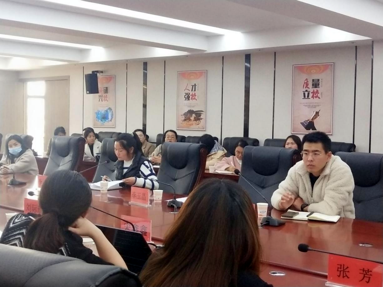 教务处副处长李云飞同志指出,在精品在线课程录制过程中,课程负责人要与视频录制技术人员随时保持沟通,做好交流,让录制工作少走“弯路”。后期还会组织前两期的精品在线课程负责人与本期的精品在线课程负责人进行沟通交流,做好录制工作。