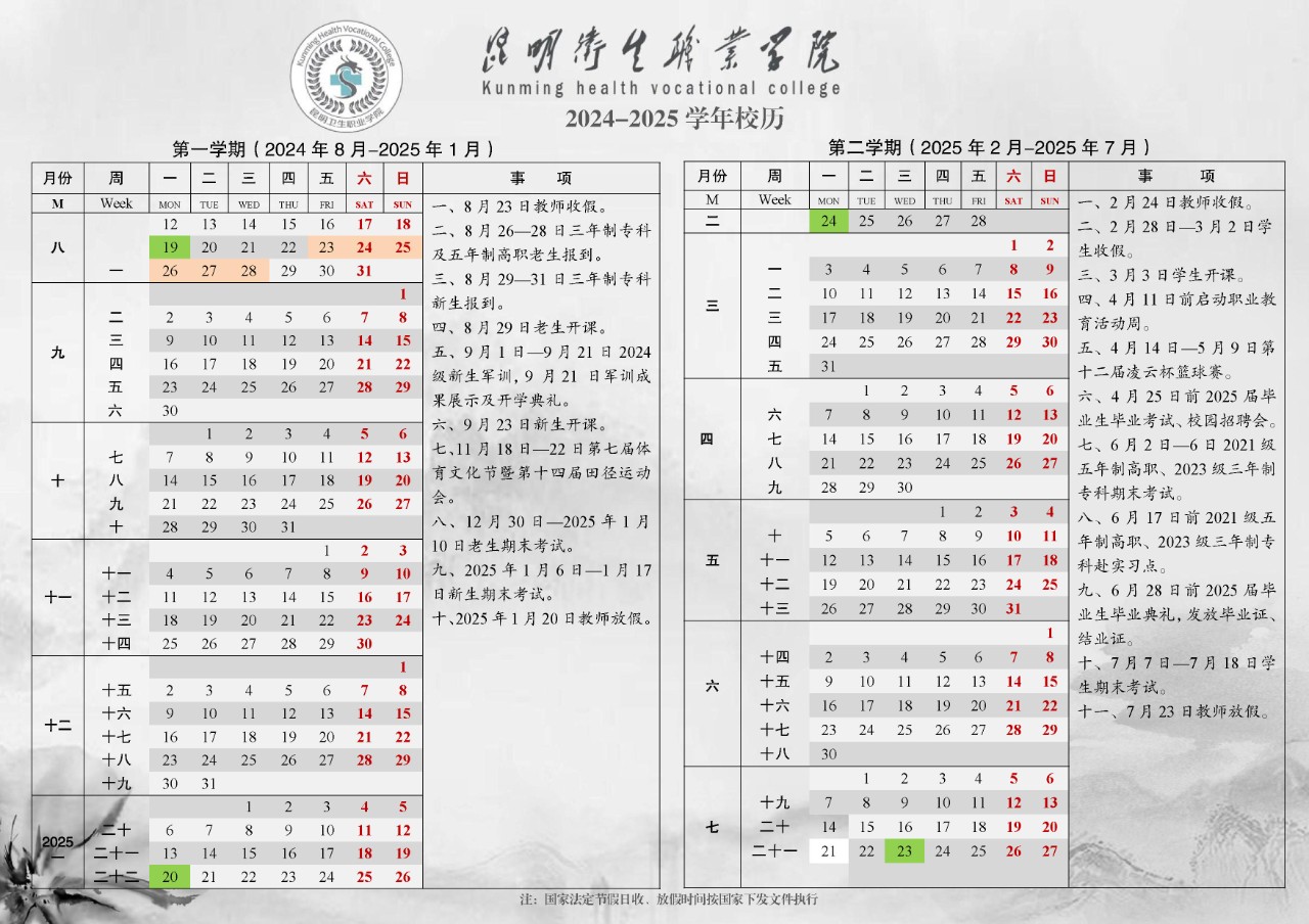 350vip浦京集团官网 2024-2025 年校历