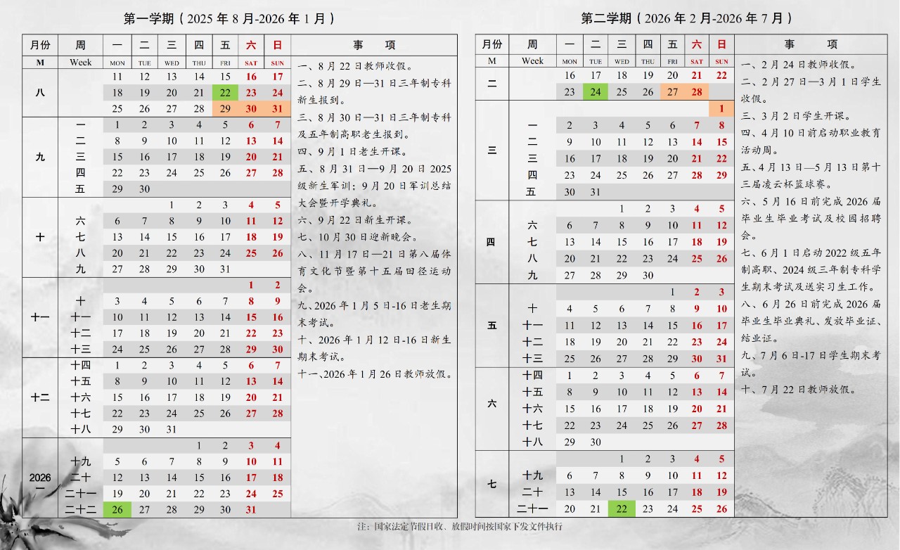 350vip浦京集团官网 2025-2026 年校历
