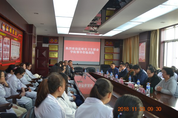 11月23日上午,浦京张尤松副院长,护理学院蒋淑昆院长,临床学院苏亚碧院长、冯伟副院长,教务处刘小艳老师,实习管理处纳适老师赴非直属附属安宁市人民医院巡视实习工作,与实习同学进行了亲切的会谈。参加座谈会的还有安宁市人民医院陈彦章副院长,马会能主任,会议由浦京实习管理处颜慧林副处长...