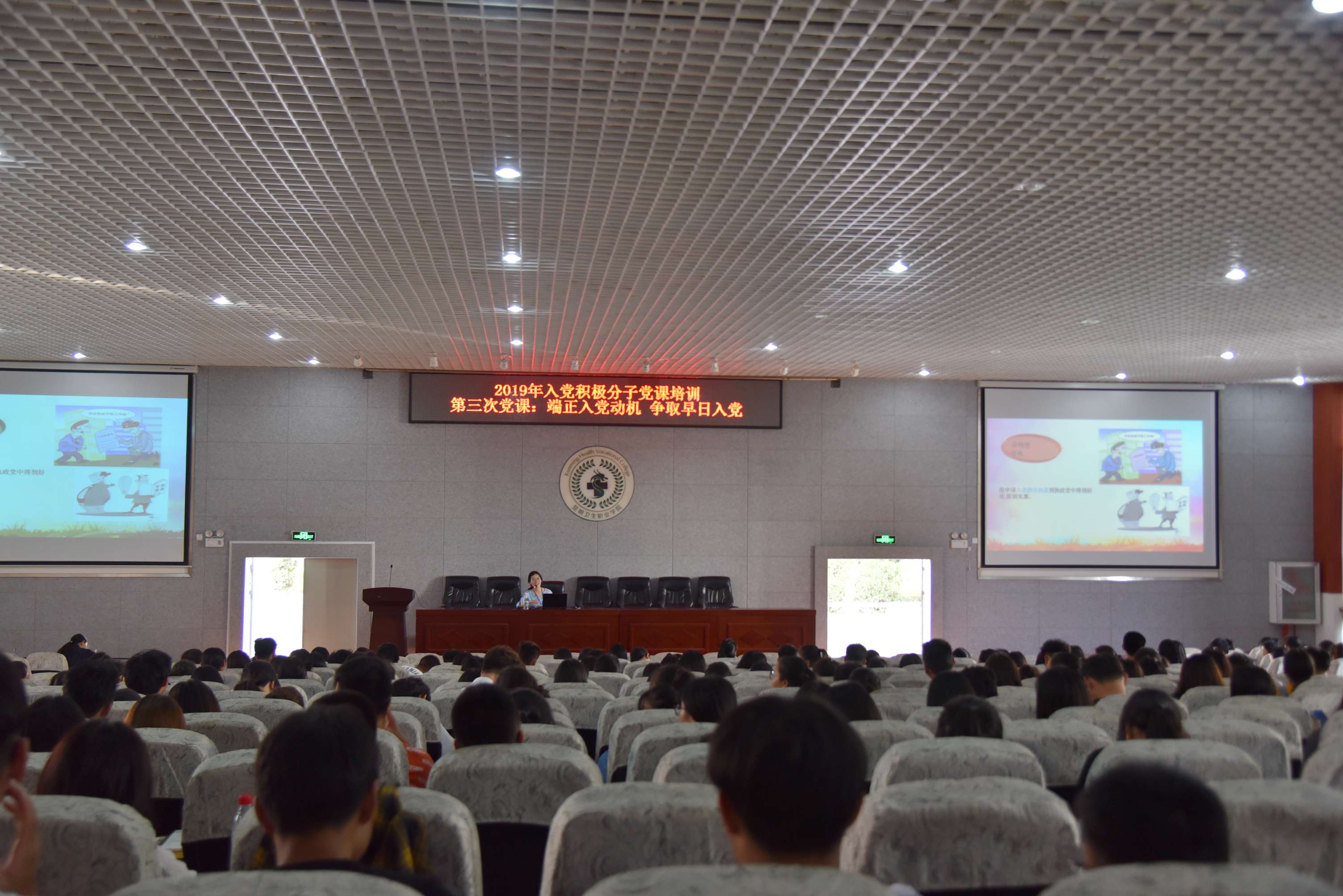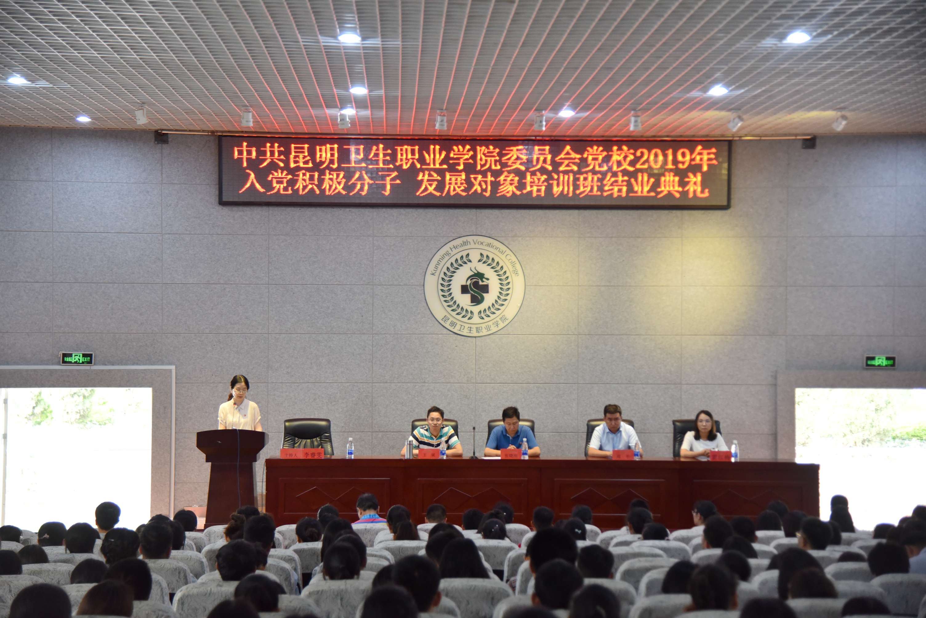 2019年5月22日17:30,学院党委党校2019年入党积极分子、发展对象培训班结业典礼在学术报告厅顺利举行。学院党委副书记、组织部部长张晓刚,党委委员、副院长周平,党委委员、宣传统战部部长王斌,团委书记、党校办公室主任雷红梅,以及各党支部书记、委员、组织员和培训班学员300余人参加了会议。结业典礼由党委组织部副部长李睿雯主持。