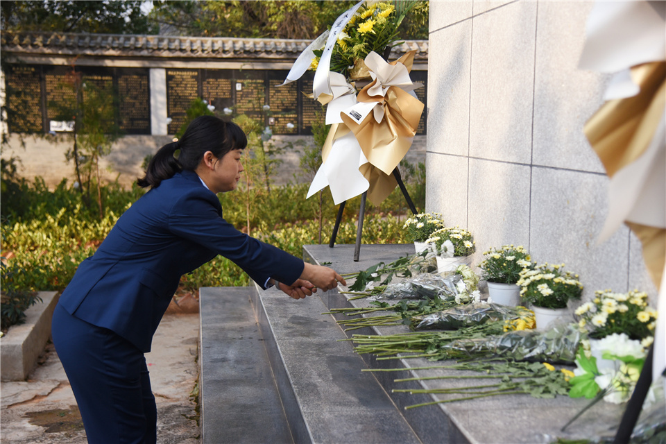 党员教师满怀虔诚敬献鲜花