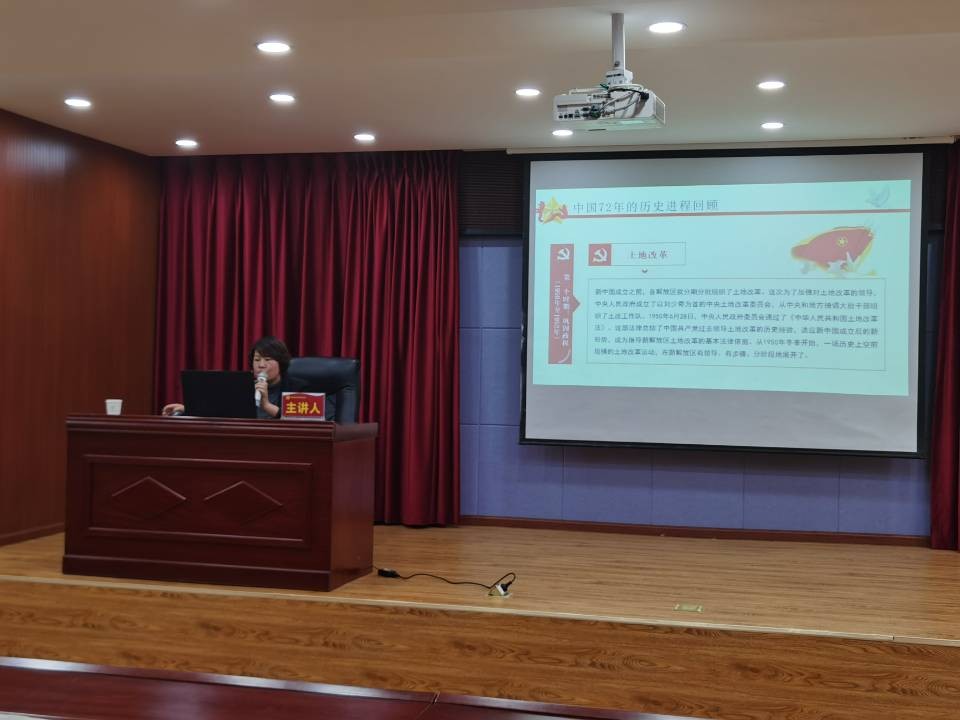 严紫华同志从党的建立、中国民主革命的出现以及无产阶级登上历史舞台等三个方面,给大家分享中国共产党的历史及优秀传统。