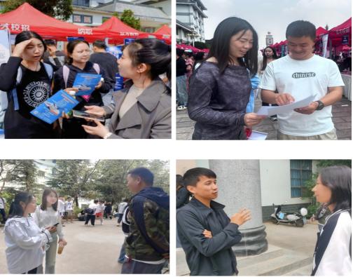 4月11日,浦京在晋宁校区举行2024届毕业生第一场校园招聘会,公共学院直属党支部党员同志第一时间联系相关帮扶学生,开展谈心谈话,并到招聘会现场进行相关就业指导。