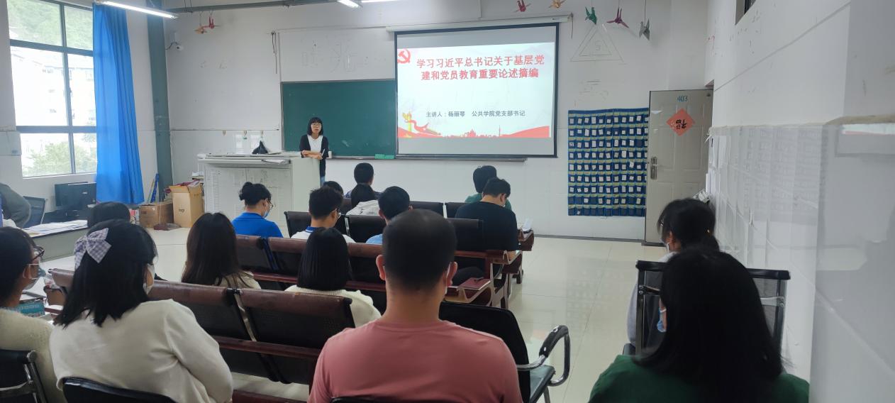 为深入开展学习贯彻习近平总书记关于基层党建和党员教育重要论述,发挥基层党建的战斗堡垒作用,以高质量基层党建引领教育高质量发展,2022年9月2日,公共学院党支部组织全体党员开展“学习习近平总书记关于基层党建和党员教育重要论述摘编”主题党日活动。本次活动由党支部书记杨丽琴主持并带领学习。