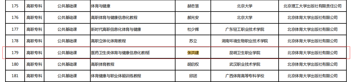 近日,教育部办公厅发布了《关于公布首批“十四五”职业教育国家规划教材书目的通知》(教职成厅函〔2023〕19号)350vip浦京集团官网张洪建教授团队联合编写的《医药卫生类体育与健康信息化教程》成功入选首批“十四五”职业教育国家规划教材。