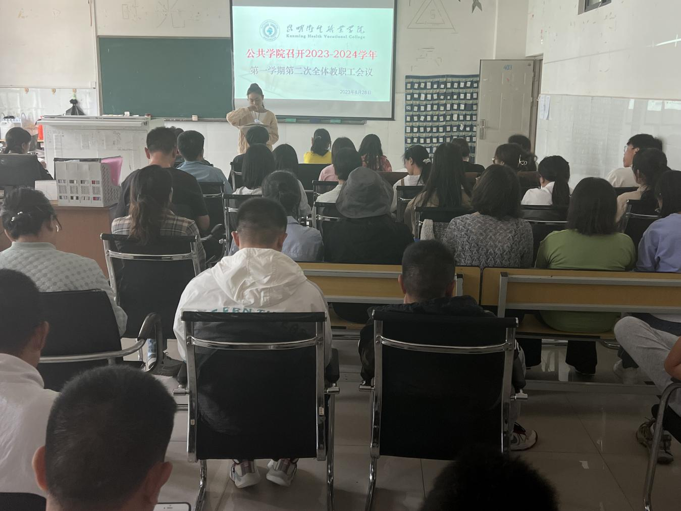 2023年8月28日,于综合楼403办公室召开2023-2024学年第一学期第二次全体教职工大会。本次会议由教学副院长朱蓉主持和主讲,公共学院院长张洪建、支部书记杨丽琴以及公共学院全体教师参加。