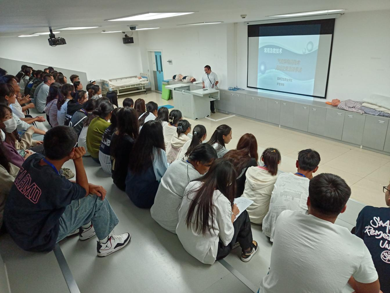 本次活动分为理论学习、实操学习以及综合考核共三个部分。9月6日,临床学院和护理学院教师向学员们深入讲解了救护概论、心肺复苏、人工呼吸、和AED自动体外除颤仪操作的基本原则、方法与步骤。通过现场演示,让参训学员对心肺复苏的全过程有了基本了解。