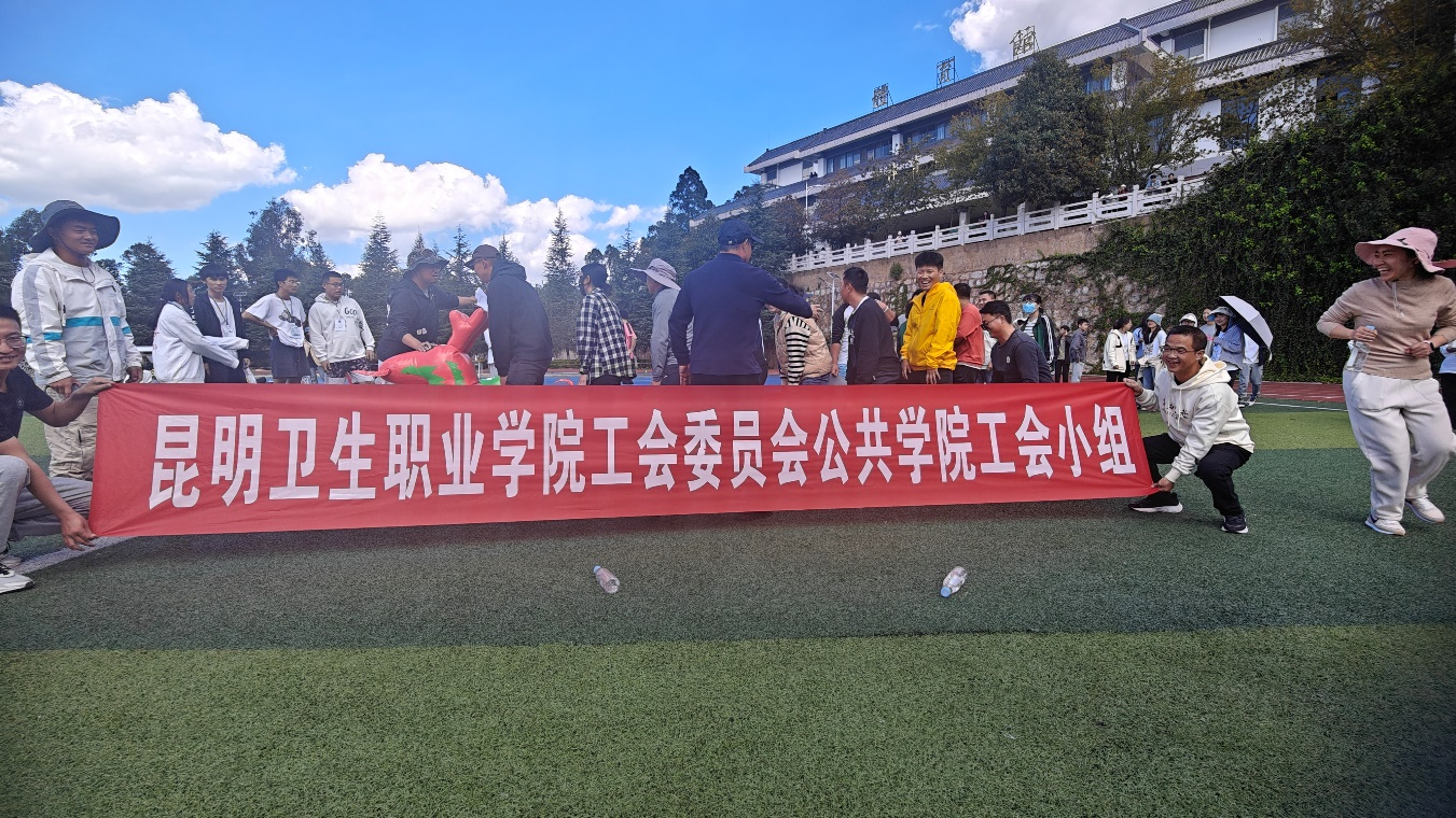 为丰富公共学院教职工的文体生活,增强教职工身体素质,加强团队精神文明建设,提高全体教职员工的凝聚力、向心力,以学校冬季田径运动会为契机,公共学院工会小组组织学院全体教师开展了“同心击鼓”、“旱地龙舟”等趣味运动会团建活动。
