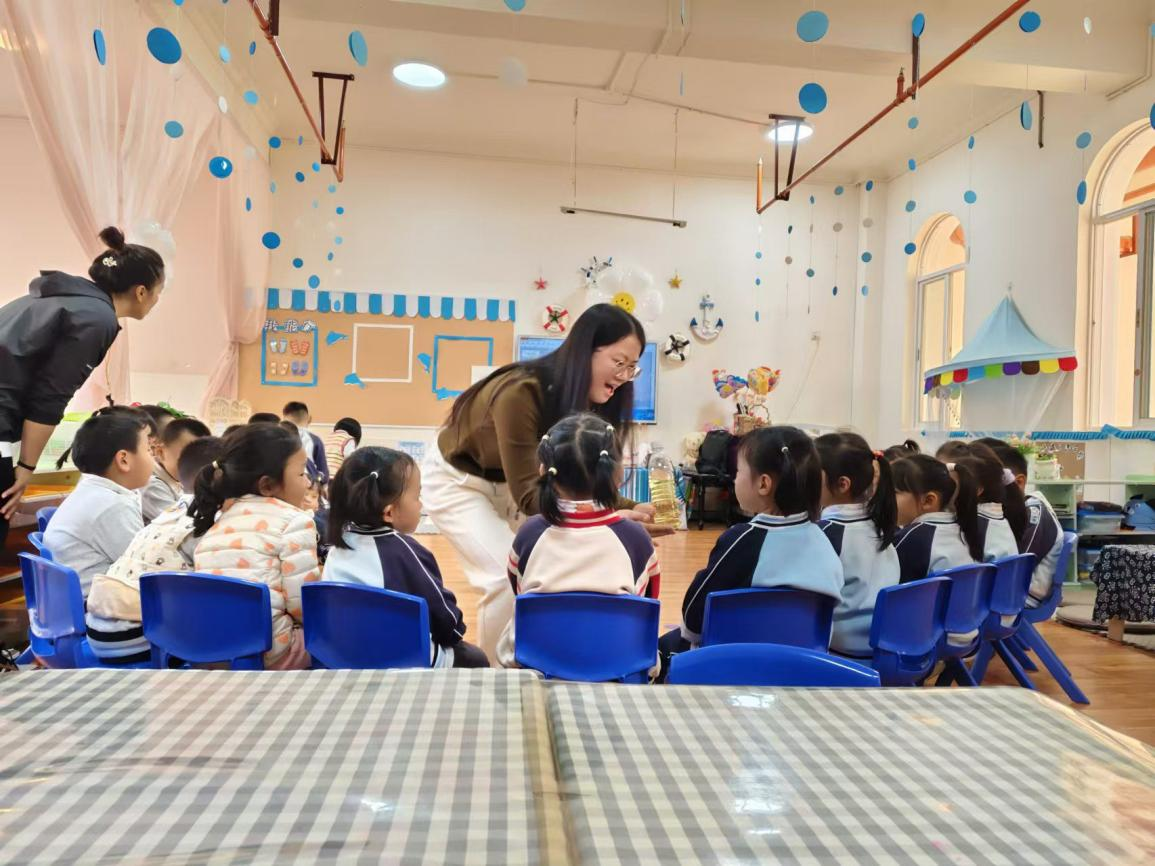接着,神奇的“魔术环节”闪亮登场。张雪雪同志借助看似普通却充满魔力的道具,如矿泉水瓶等,以独特的方式让孩子们深刻记住了相关内容。在这个过程中,老师再次将国旗的颜色元素融入其中,比如当变出红色时,就向孩子们强调红色所代表的意义,让孩子们在充满好奇与惊喜的氛围中,潜移默化地接受爱国主义教育。