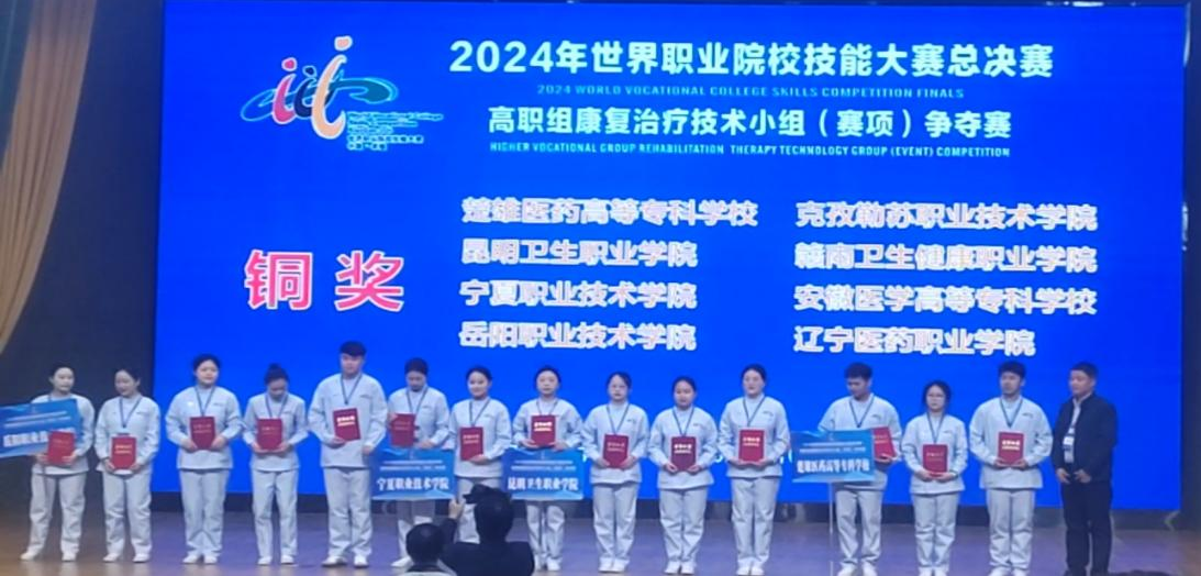 2024年10月28日至31日,2024年世界职业院校技能大赛总决赛争夺赛在万众瞩目中拉开帷幕,来自全国各地的职业院校精英汇聚一堂,共同角逐各个领域的荣誉。在医药卫生赛道四“护理技能”小组和康复治疗技术小组的激烈竞争中,浦京的参赛队伍凭借卓越的专业技能和团队协作精神,成功荣获铜奖,为学校赢得了宝贵的荣誉。