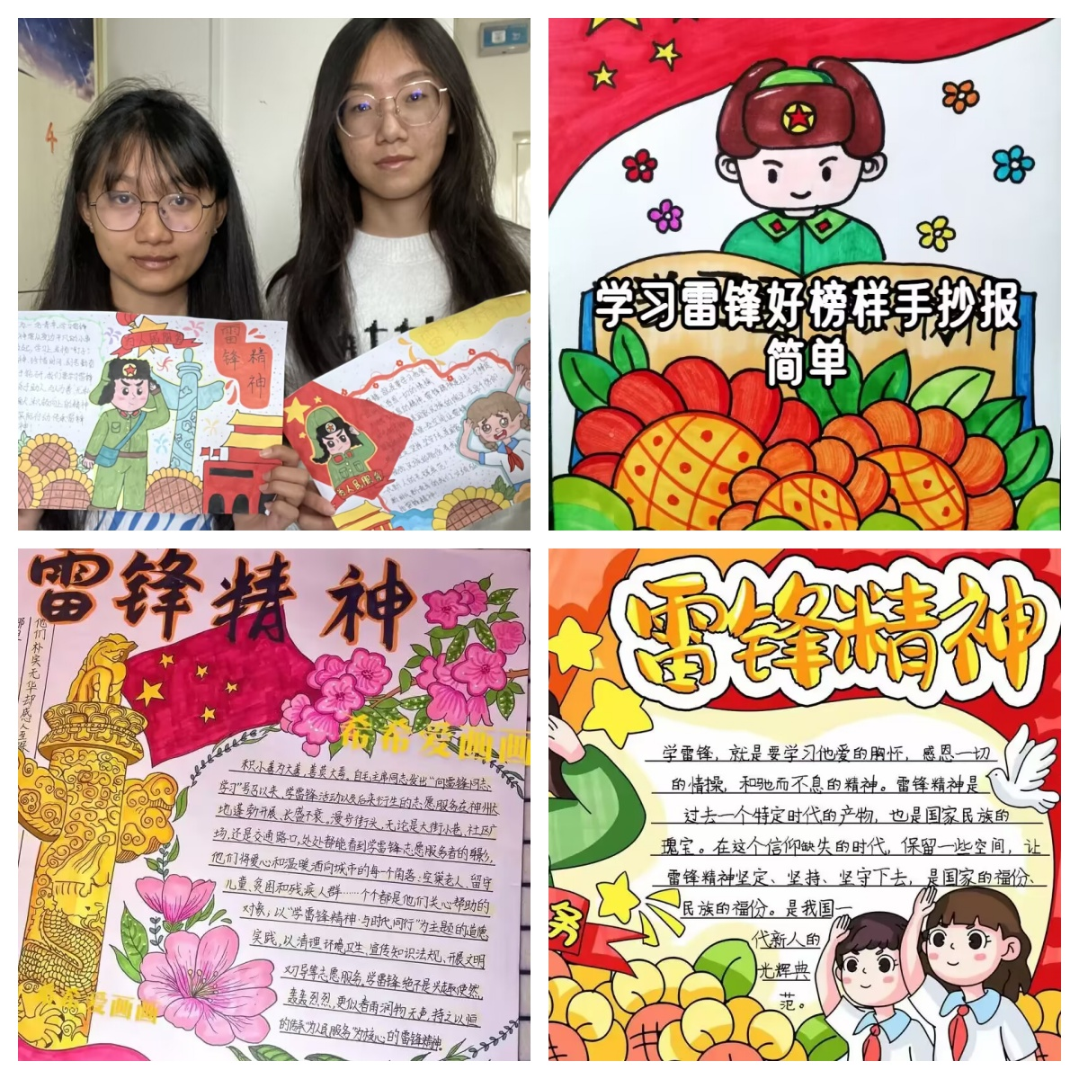 与此同时,另一部分学生积极参与到雷锋精神手抄报制作活动中。在创作过程中,同学们充分发挥主观能动性,借助互联网、书籍等多种渠道,广泛搜集雷锋的生平事迹、经典名言,以及新时代雷锋精神的内涵阐释等资料。大家精心设计手抄报的排版布局,运用色彩斑斓的画笔,将一个个感人至深的雷锋故事、一句句振聋发聩的雷锋语录生动地呈现在纸张上。
