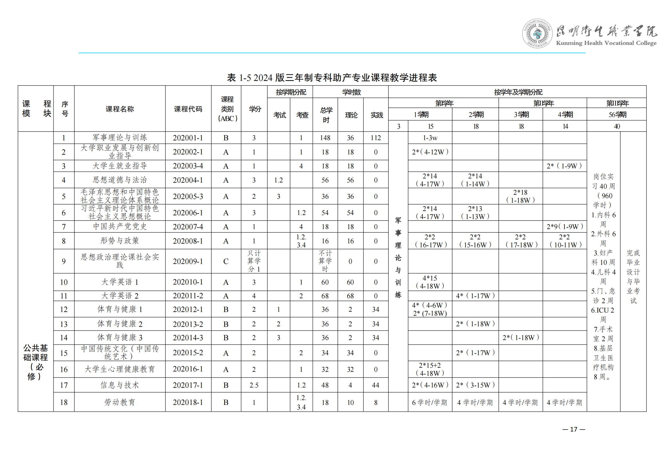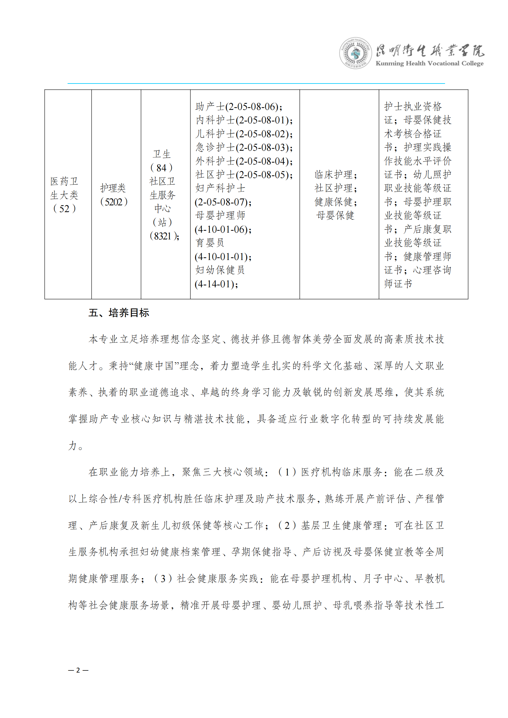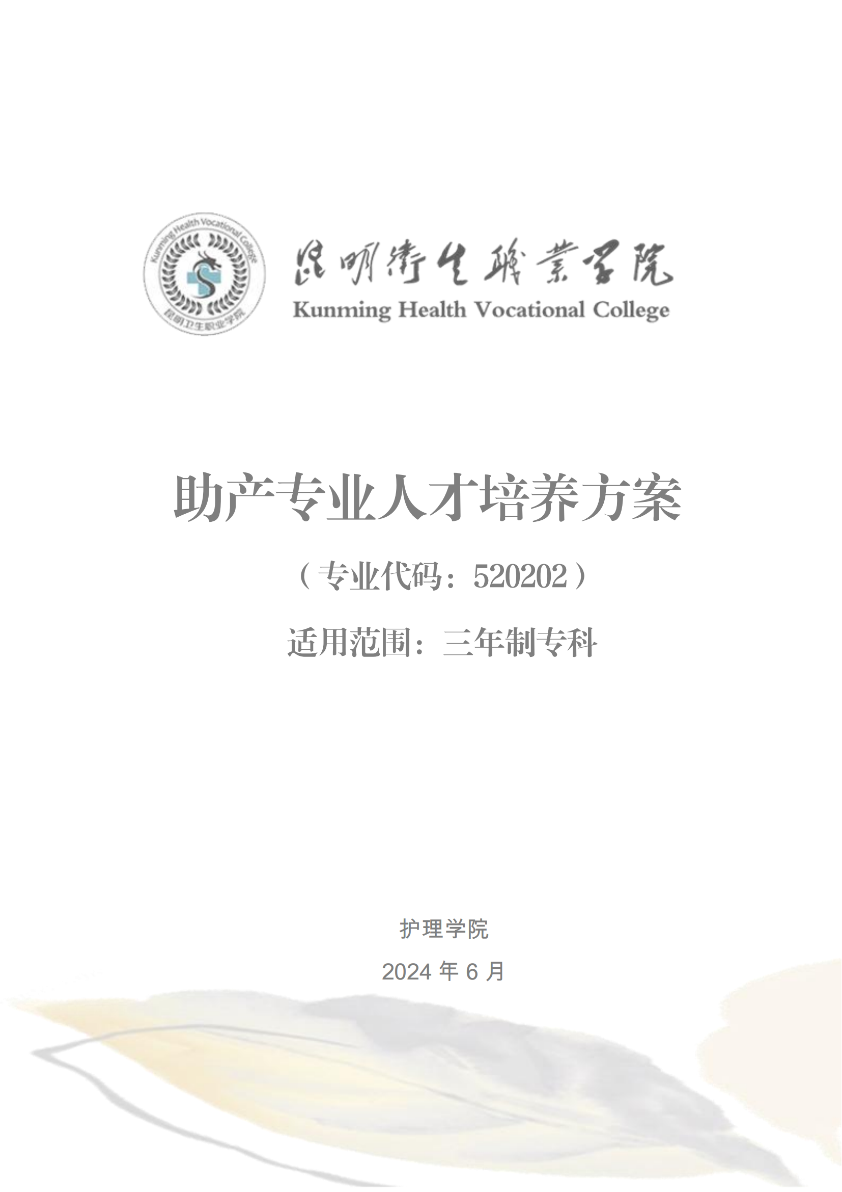 350vip浦京集团官网三年制专科助产专业人才培养方案(供23级三年制专科学生使用)