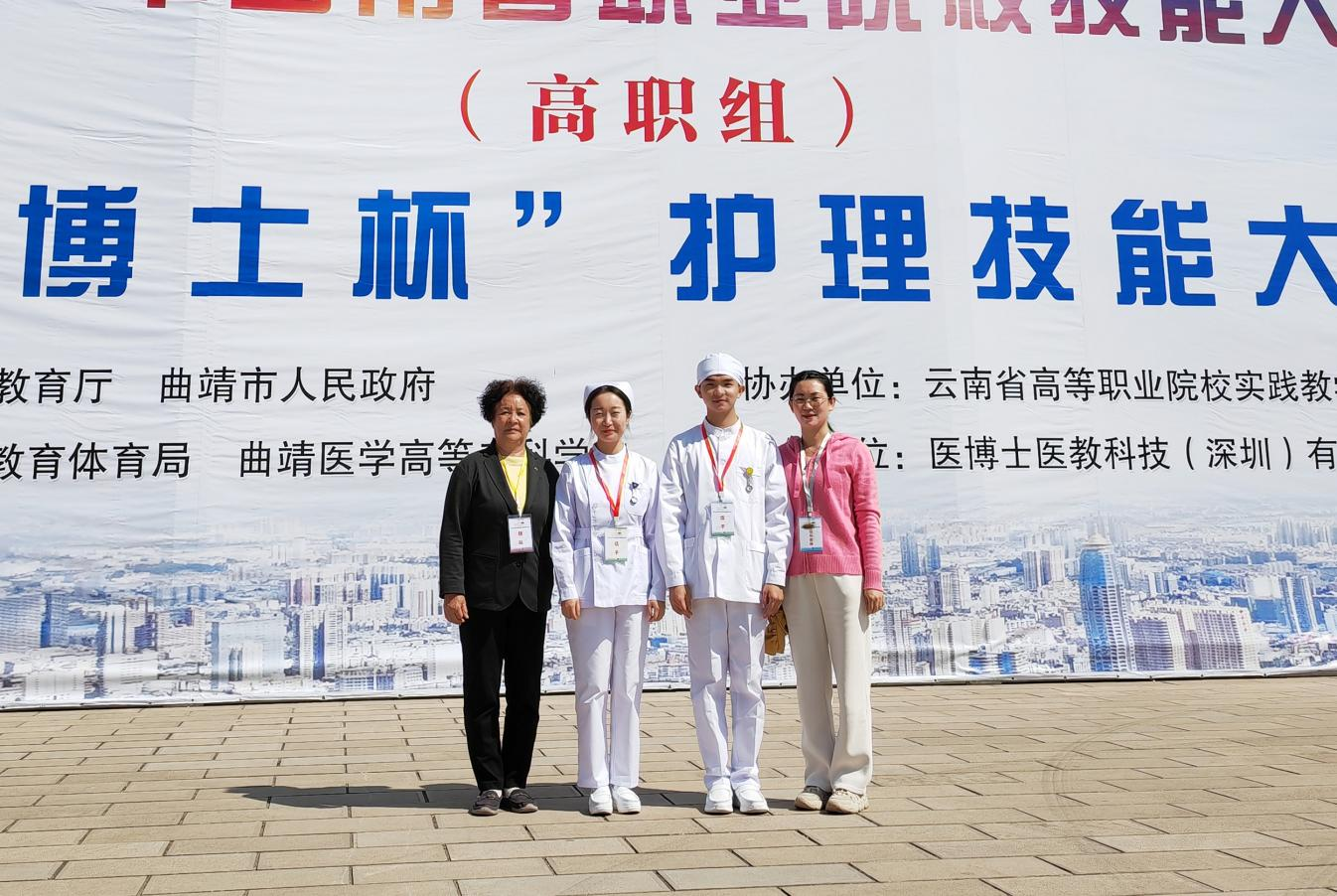 3月26日,2022年“医博士杯”云南省职业院校技能大赛高职组护理技能赛项在曲靖医学高等专科学校落下帷幕。350vip浦京集团官网选派李梦张、董廷轩两名同学,在与来自全省20家院校的36位参赛选手同场竞技过程中,沉着冷静,稳定发挥,最终双双斩获一等奖。