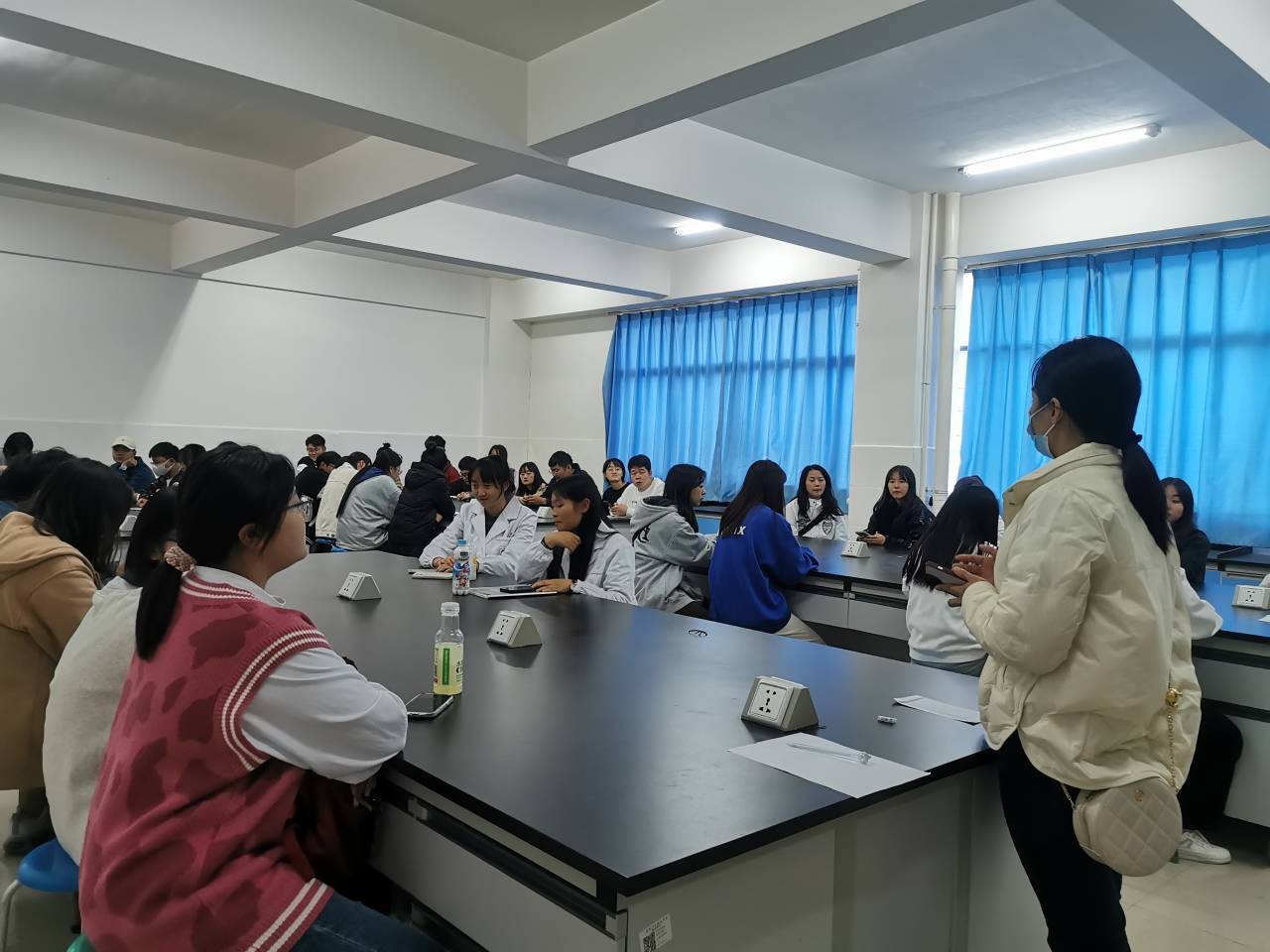 会上,各班级同学踊跃发言,就开学以来的课程设置、教学过程、教师教学方法、作业批改、课堂纪律管理、教学实践环节等方面存在的问题提出了意见和建议。老师们针对同学提出的问题进行了现场解答,并告知同学们正确有效的问题反馈的渠道,鼓励同学们积极与老师沟通。