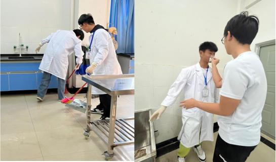 在老师的带领下,同学们运用已学医学知识,分工合作,干劲十足。清洗、保养、整理,人体解剖学教与组织胚胎学实验室里充斥着老师和学生们忙碌的身影。