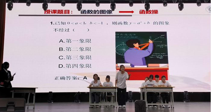 学生社团表演小品节目,用精彩的故事情节引入数学问题:函数图像如何记牢-----学生舞动一段全网较火的函数操,生动回答了这个问题,瞬间燃爆全场。