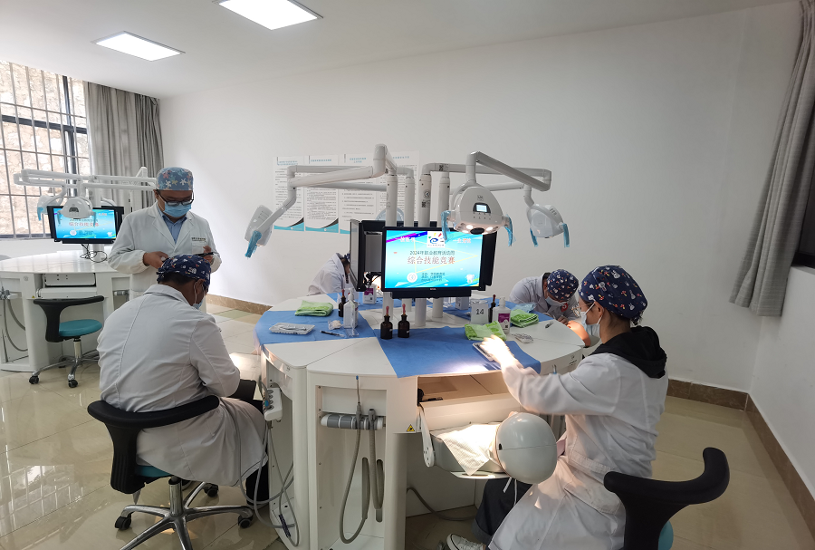 综合技能竞赛在口腔学院105进行,各参赛选手操作熟练,口述清晰流畅,突显出职业医学生的超高职业素养及技能操作水平。通过本次职业活动周综合技能竞赛,有效加强学生的技能操作水平,达到以赛促学、以赛促教的竞赛目标。