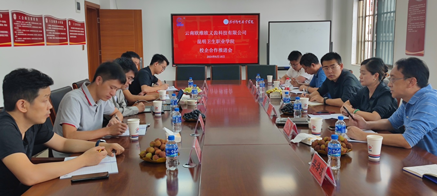 2024年6月18日350vip浦京集团官网人事处张路处长、教务处孟州令处长、口腔学院虎志辉院长、口腔学院张晓刚副院长等一行6人到云南欧维欧义齿科技有限公司召开校企合作推进会议,会议就双方师资互培中涉及的具体工作进行接洽,口腔学院虎志辉院长介绍了此行的目的,希望在师资互培方面进行深度合作,教务处孟州令处长就浦京教师进厂学习提出明确目标和考核要求,希望企业能对教师提出更高要求和目标。人事处张璐处长就浦京教师进厂学习的考勤、住宿、就餐等问题提出了建议。云南欧维欧义齿有限公司艾国总经理表示将对双方师资互培工作给予大力的支持。通过接洽双方达成共识,确定了互培时间、吃住安排、互培及互考项目、培训组织形式、培训纪律管理等问题。