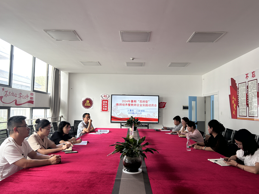 2024年6月21日在口腔学院会议室组织召开6名教师即将赶赴云南欧维欧义齿有限公司开展师资互培前的动员会,会议邀请学院人事处张路处长参加,会上对6名教师提出了明确的互培目标和纪律要求。
