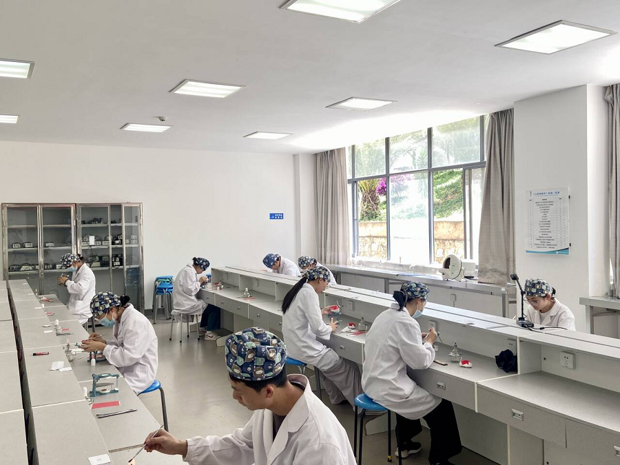 5月16日下午,在“一技在手,一生无忧”的职业教育活动周主题引领下,口腔学院205实训室内气氛紧张而热烈,一场展现口腔医学专业学子精湛技艺的全口义齿排牙比赛精彩上演。