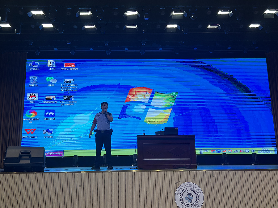 最后,昆阳派出所驻校民警丁五通警官进行校园安全宣讲。丁警官聚焦校园生活实际,针对校园欺凌、宿舍安全、消防安全等方面内容,结合发生在校园周边的真实事件,深入浅出地讲解了相关法律知识和安全防范要点。他强调,同学们要学会用法律武器维护自身合法权益,共同营造安全、文明、和谐的校园环境。