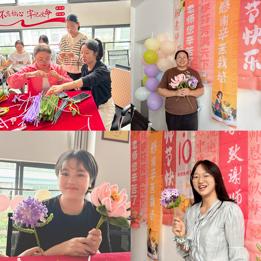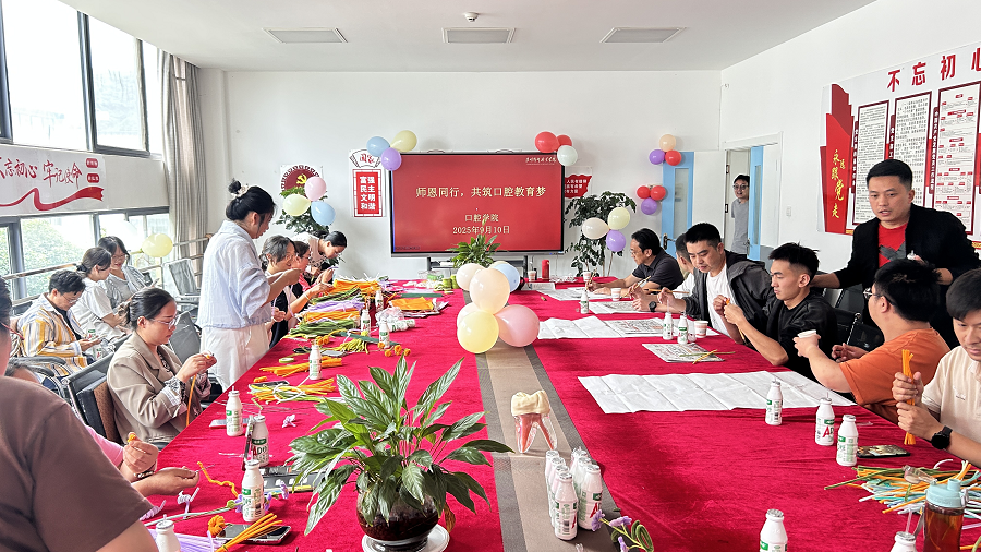 金风送爽,桃李芬芳,2025年9月10日为热烈庆祝第41个教师节,丰富教职工文化生活,9月10日11点,350vip浦京集团官网口腔学院在311会议室举办“巧手扭花颂师恩,挥毫泼墨写初心”主题活动。学院领导及教师齐聚一堂,以缤纷扭扭棒编制“微笑花束”,以遒劲笔墨书写育人初心,在花香与墨香中度过了一个温馨、专业又富有文化味的节日。