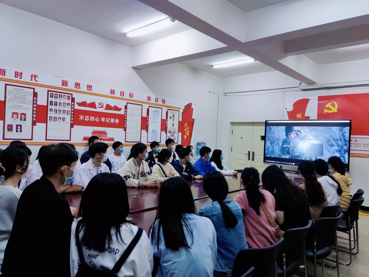 图1:入党积极分子、发展对象、党员代表正在观看红色影片