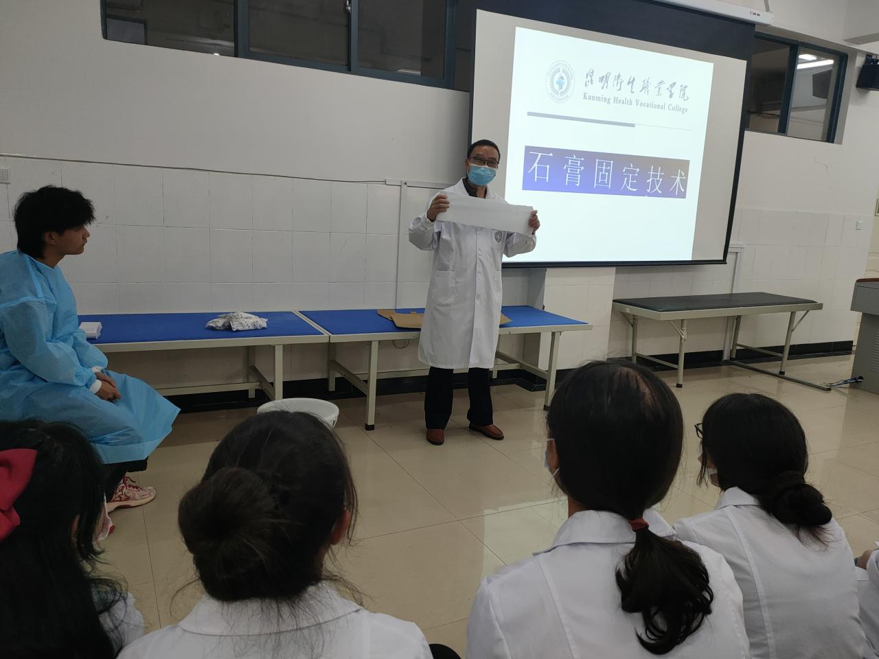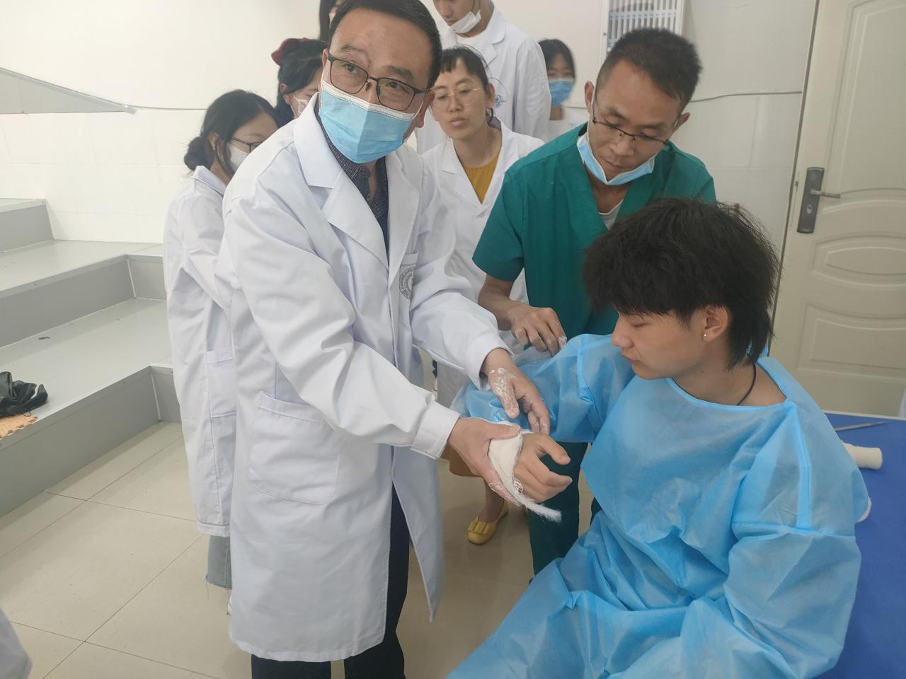 图3 张学平主任与施兴乐老师一同演示石膏固定术