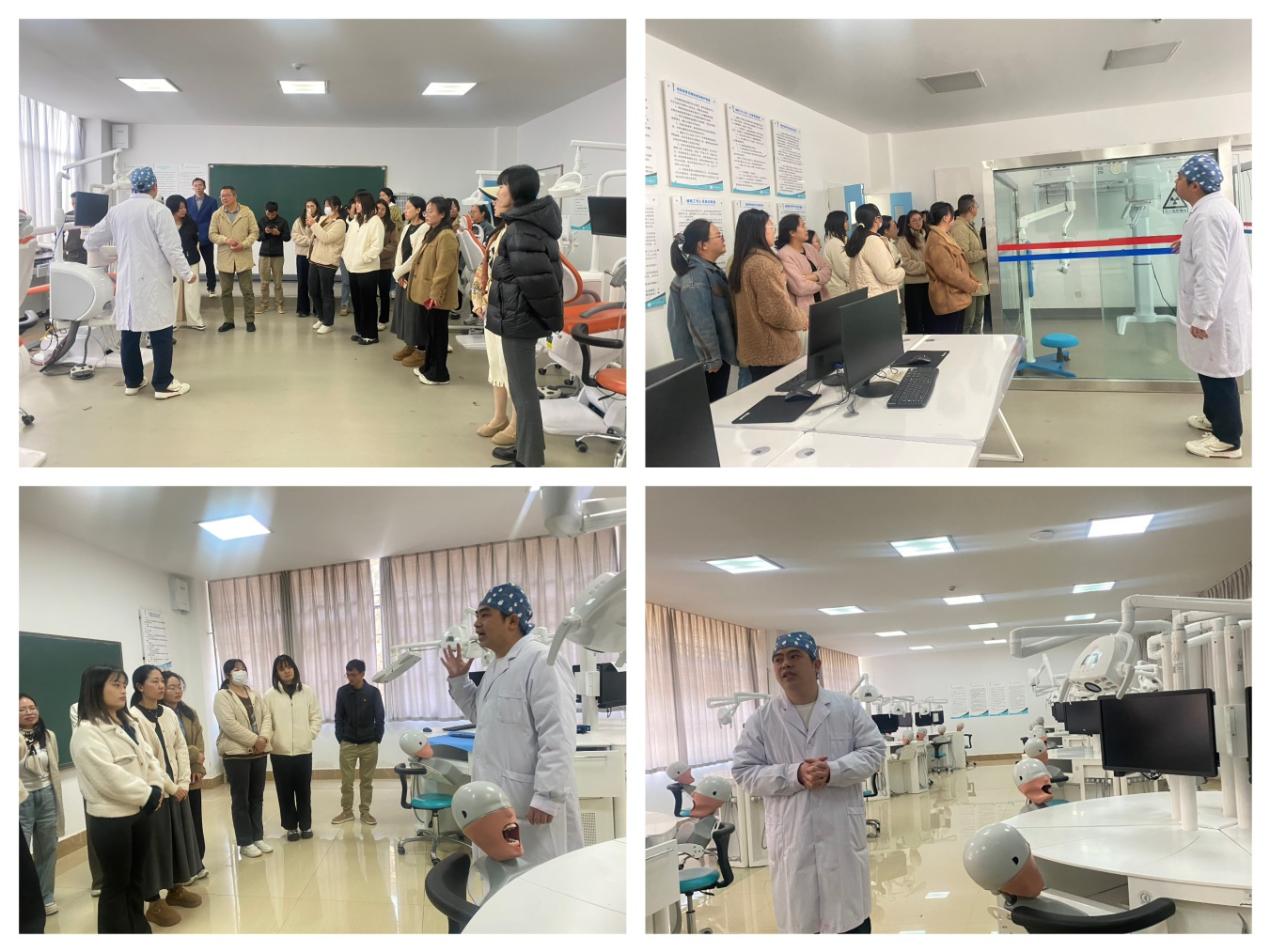 最后,全体党员参观了口腔学院实训室,近距离观摩了先进的口腔医疗设备和实践教学环境。通过参观,党员们深刻感受到口腔医学的科技发展与创新成果,进一步激发了跨学科合作的热情。