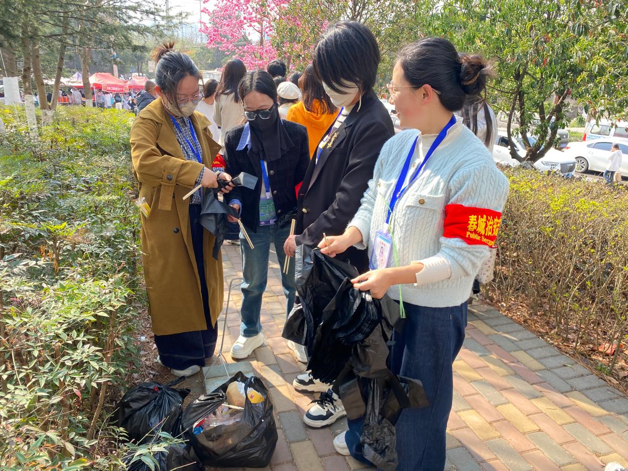 下午15:30,活动正式拉开帷幕。思政教师们分为六个小组,各司其职,在一号校门口及周边区域开展志愿服务。