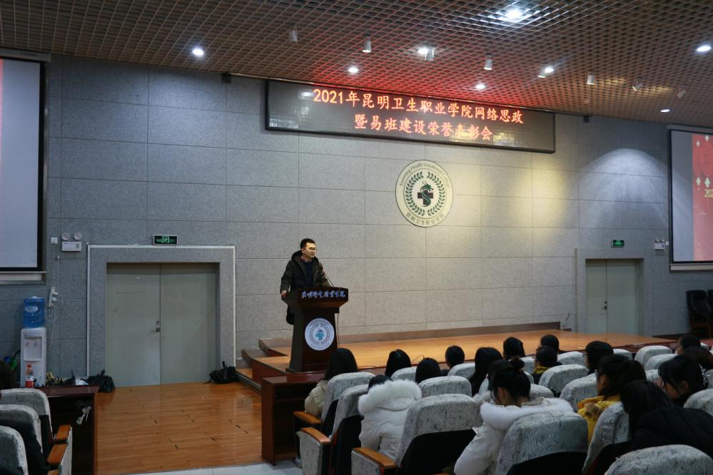 另外,李宽能老师作为授牌班级的辅导员老师,对本年度班级易班建设进行总结发言。李老师分享了21级高职检验三班的易班建设经验,他表示易班班级的管理重在制度的建设和完善,善用学生自主管理非常重要。他还强调了内容建设的重要性,只有内容来源于学生生活,学生才能积极参与到点赞评论的再次学习中来。