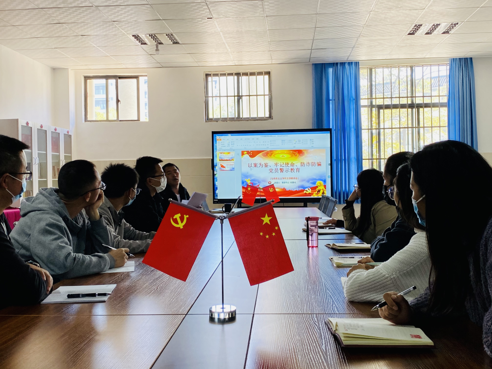 接下来支部开展了“以案为鉴、牢记使命、防炸防骗”党员警示教育主题党日活动。支部书记杨登光同志播放了警示教育视频,并针对电信诈骗的特点,向支部党员介绍了网络诈骗案例、最新诈骗手法、防范措施等,提醒党员同志不要轻易相信陌生电话和短信,不向陌生人提供自己及家人的身份信息、存款、银行账号等情况,进一步提高党员同志的防骗反诈意识。