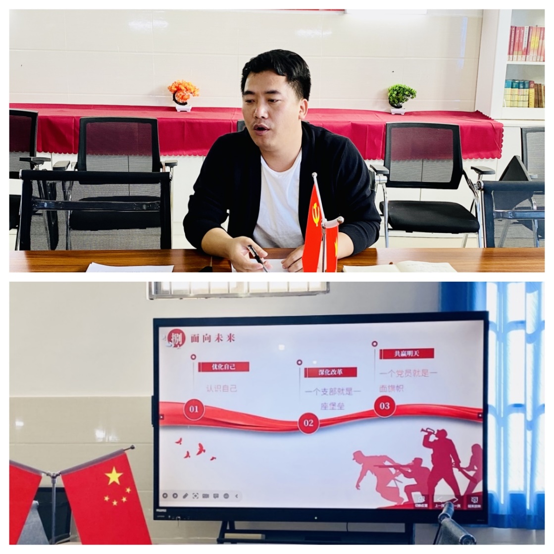 党的二十大报告指出,全党必须牢记,全面从严治党永远在路上,党的自我革命永远在路上,决不能有松劲歇脚、疲劳厌战的情绪,必须持之以恒推进全面从严治党,深入推进新时代党的建设新的伟大工程,以党的自我革命引领社会革命。为落实相关党建要求,马克思主义学院党支部以“统一思想,深化党建”为议题于2023年4月23日15:40在党员活动室召开了支部党员大会。会议由党支部书记杨登光主持,马克思主义学院党支部全体党员参会。