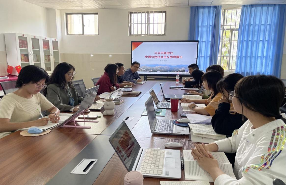 接下来,在马克思主义学院开展《习近平新时代中国特色社会主义思想概论》课程集体备课会。本次集体备课人为田津老师;分别就课程第一讲“马克思主义中国化时代化新的飞跃”进行主讲和课程分析,随后由任课教师积极参与讨论、交流。本次课程应结合学生实际情况,以生动形象的案例进行教学以帮助学生更好的理解、掌握教学内容。